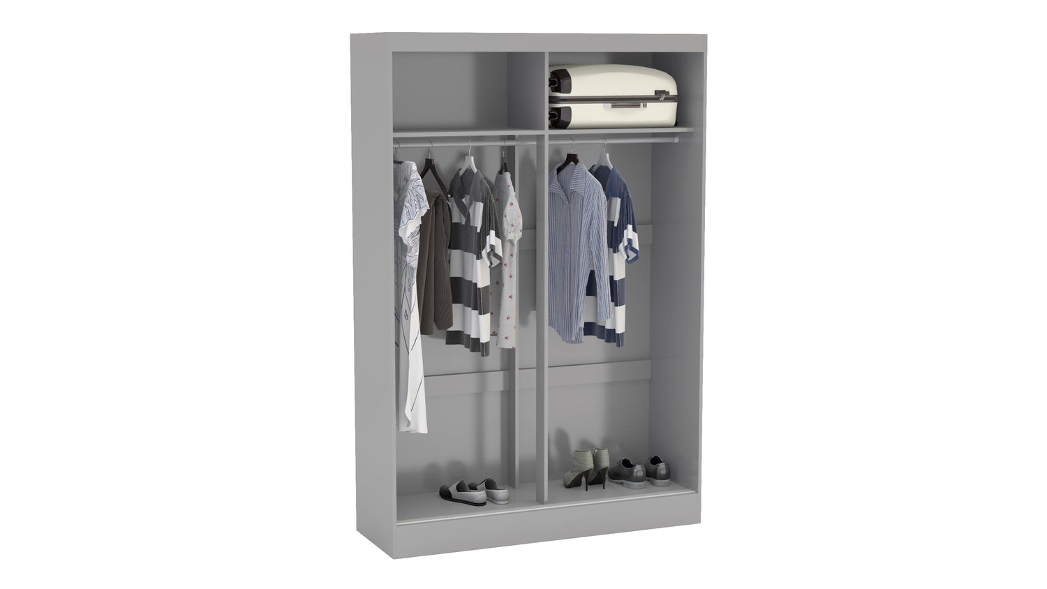 Modern and sleek, this 2 door sliding wardrobe with mirror combines a high-gloss finish with bold silver detailing to make any space feel contemporary. This stunning wardrobe features a sliding mirrored door, and an internal shelf for additional space.