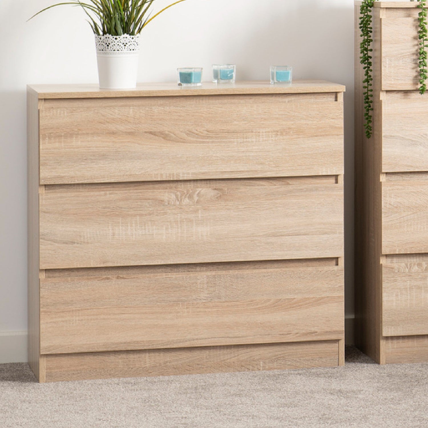 Malvern 3 Drawer Chest of Drawers - Sonoma Oak is backordered and will ship as soon as it is back in stock.