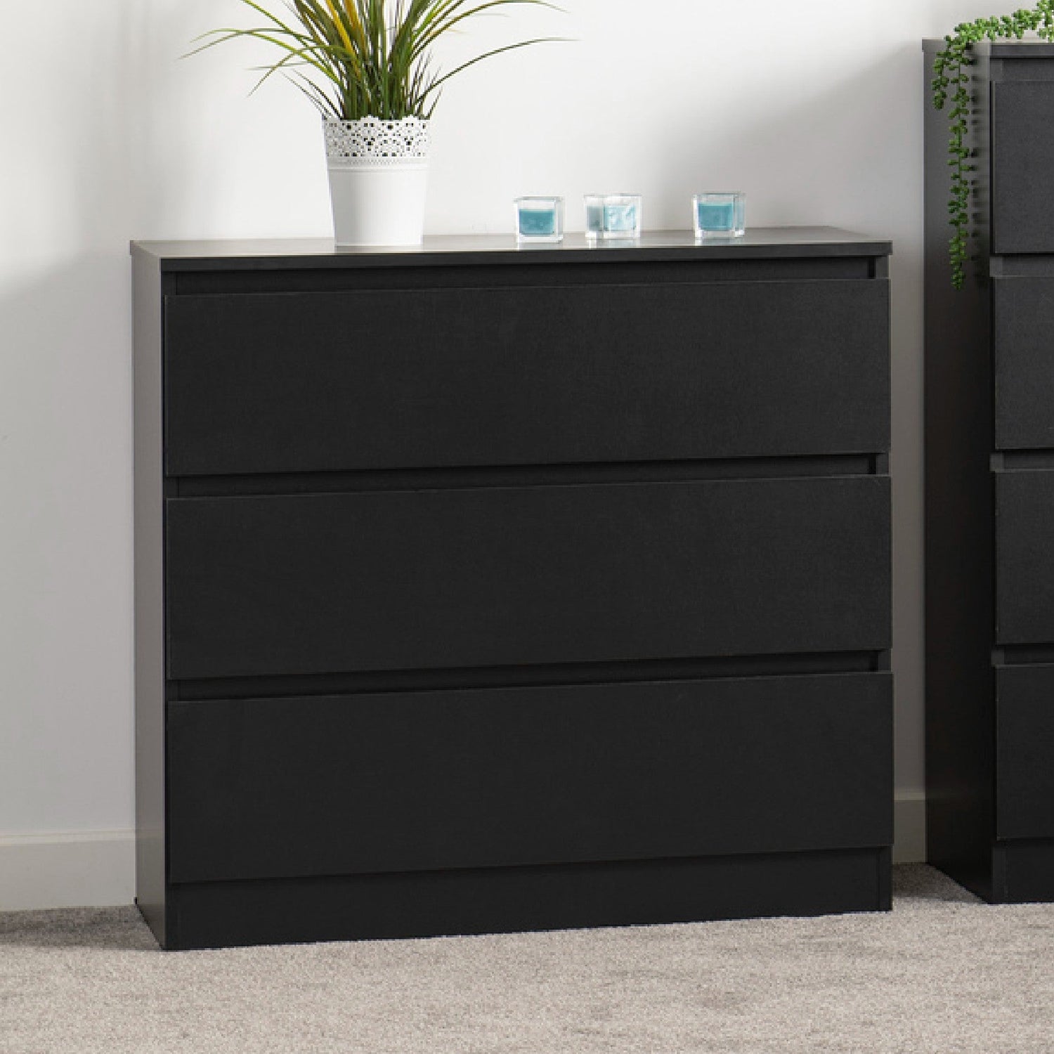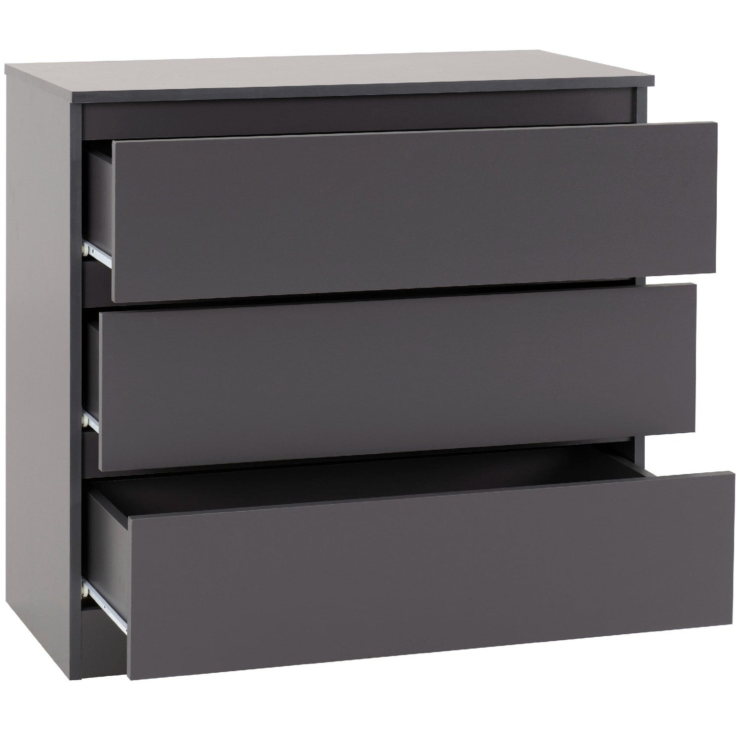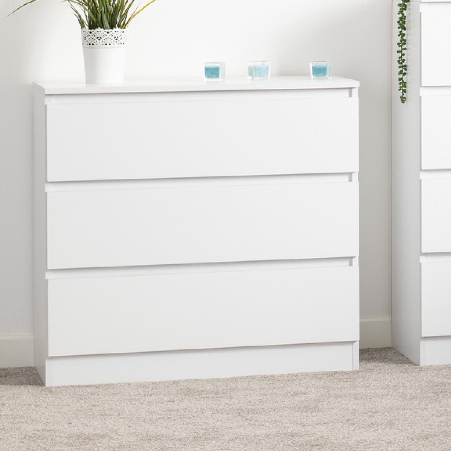 Make a bold statement with the Scandinavian inspired Malvern collection. Its simple, minimal and effective design fits perfectly into any modern interior. The Malvern features clean edges and modern, ergonomic, handleless entry allowing comfortable and safe access to your drawer chest. Three large drawers are perfect for storing folded clothes neatly out of sight, as well as providing functional space for a lamp on the table top. Beautifully crafted and available in four contemporary finishes the Malvern Collection will seamlessly blend into any interior.