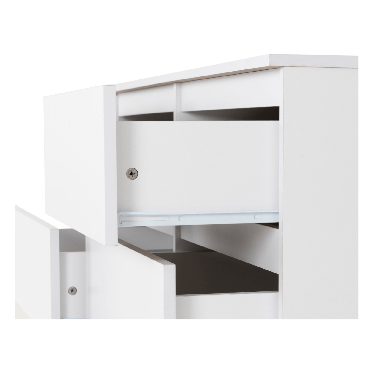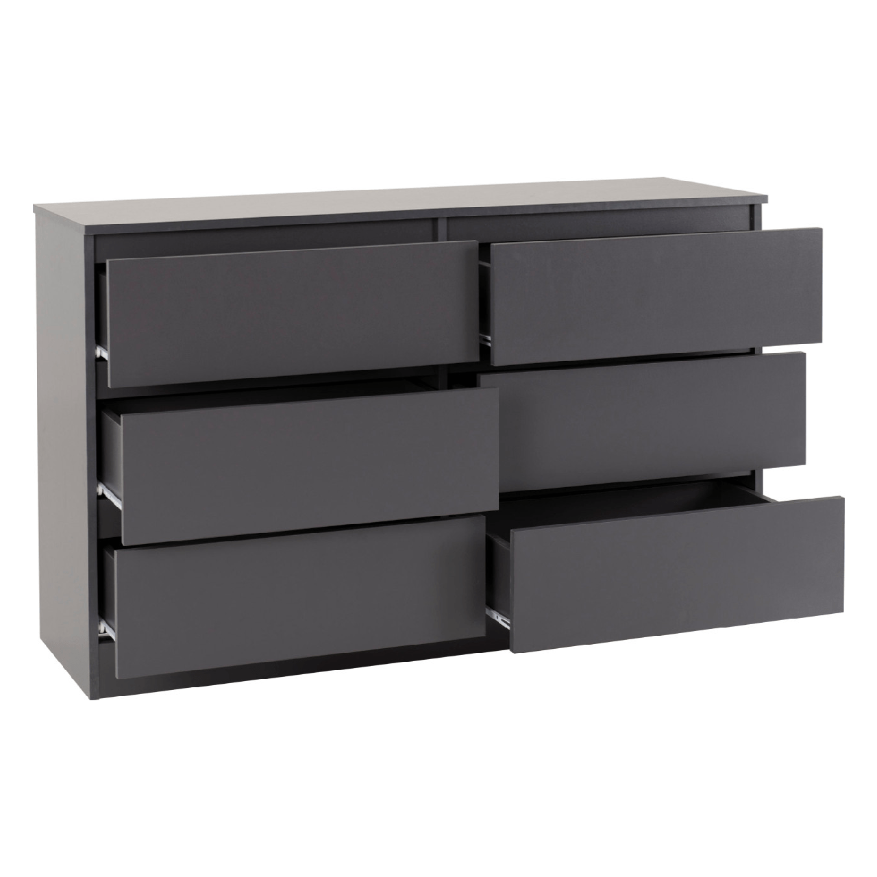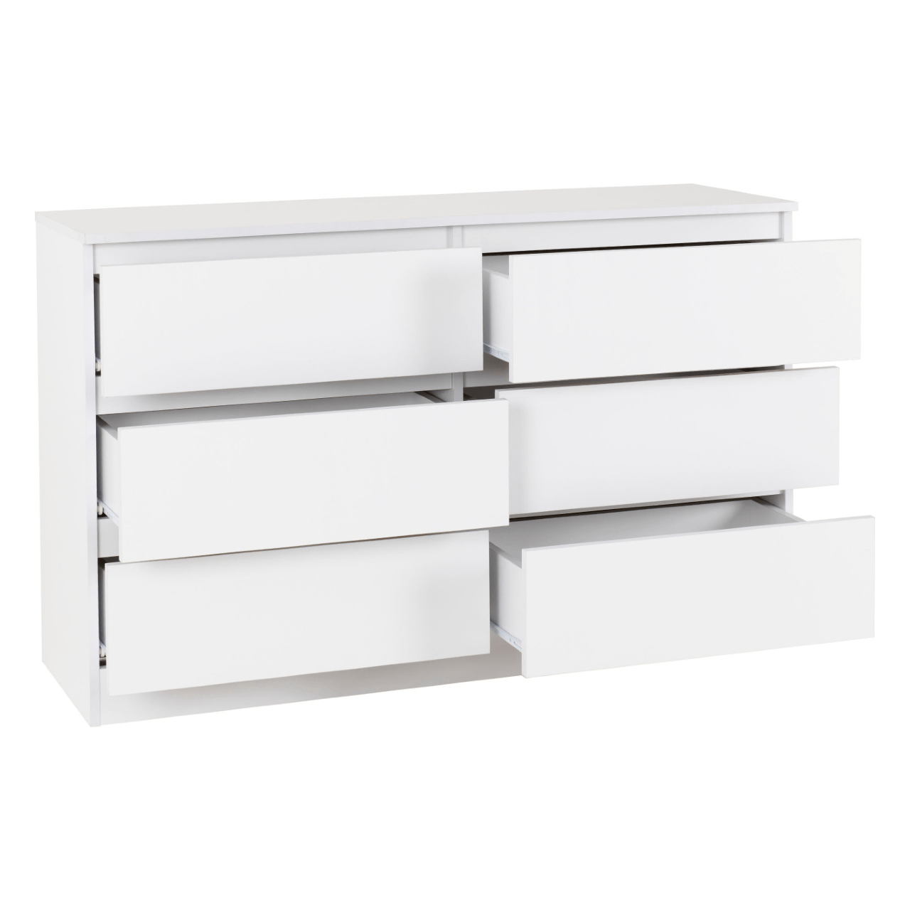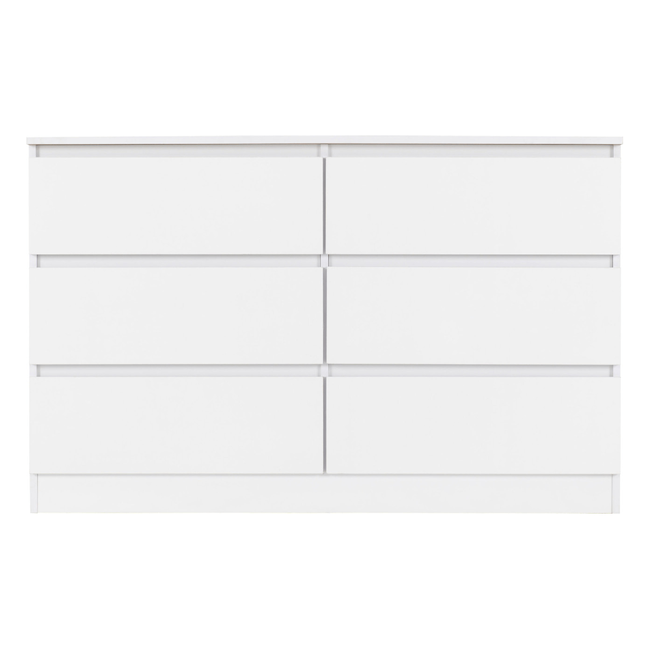 Make a bold statement with the Scandinavian inspired Malvern collection. Its simple, minimal and effective design fits perfectly into any modern interior. The Malvern features clean edges and modern, ergonomic, handleless entry allowing comfortable and safe access to your drawer chest. Six large drawers are perfect for storing folded clothes neatly out of sight, as well as providing functional space for a lamp on the table top. Beautifully crafted and available in four contemporary finishes the Malvern Collection will seamlessly blend into any interior.