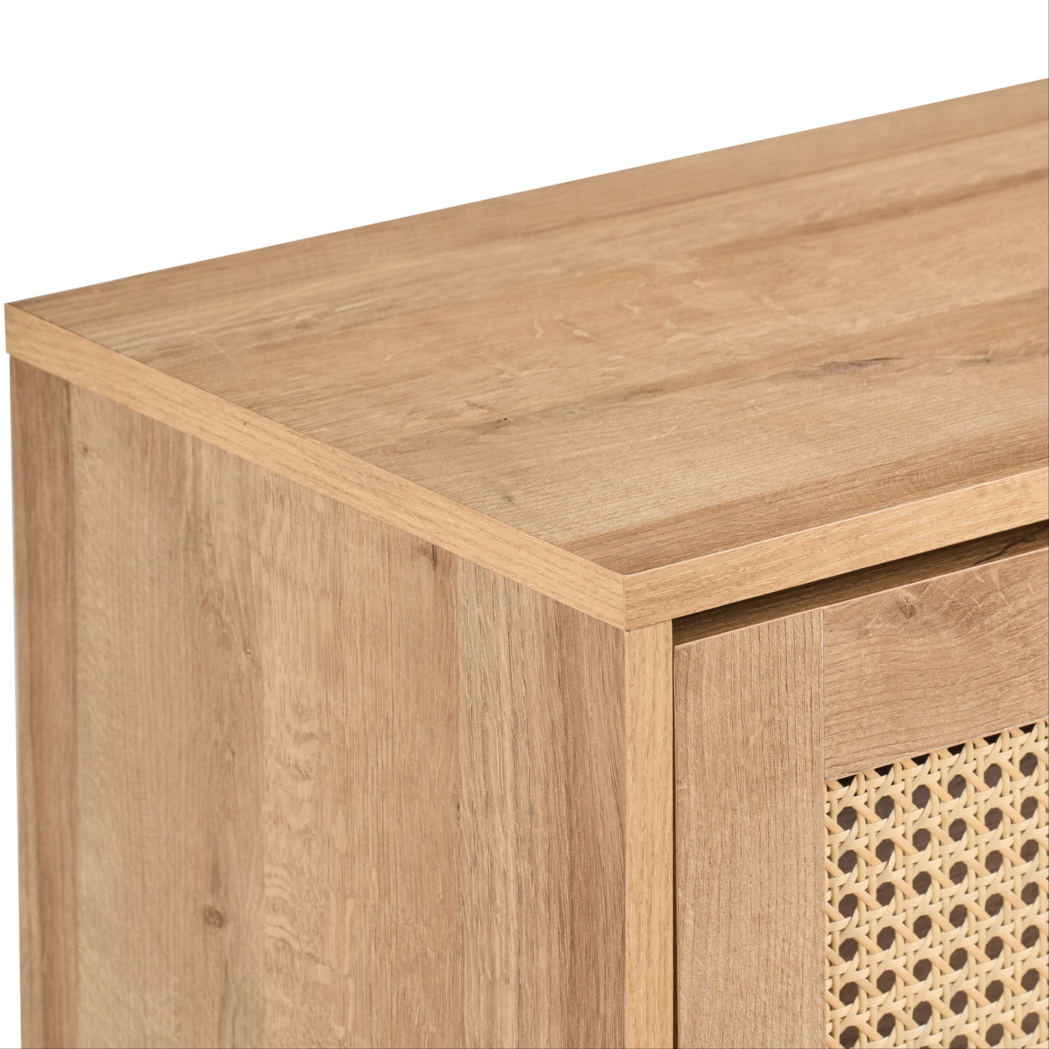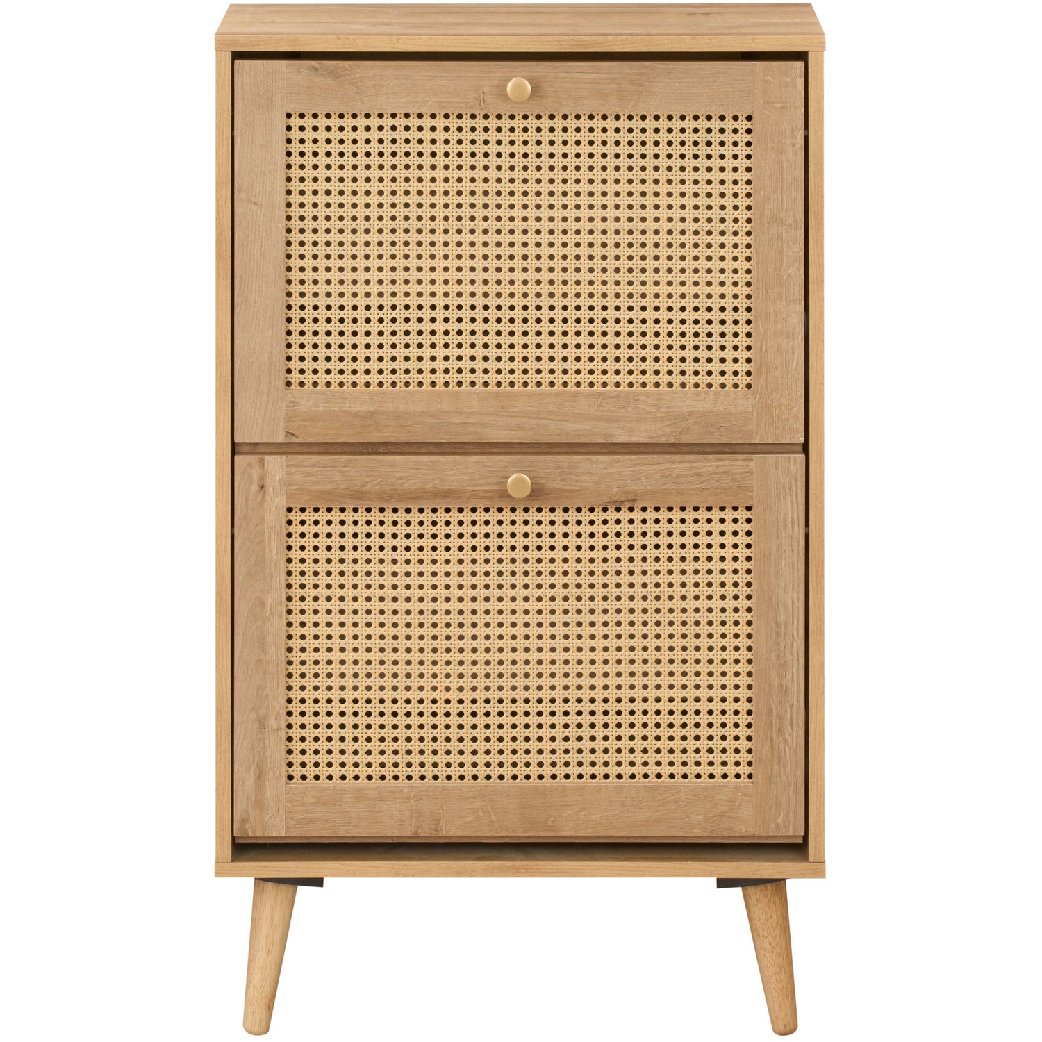 The Manila 2 Door Flip Down Shoe Storage Cabinet offers a charming fusion of natural texture and practical design. With PVC Rattan detailing on the door fronts and a warm oak-effect frame, this compact cabinet adds a subtle rustic touch to your hallway or bedroom space.