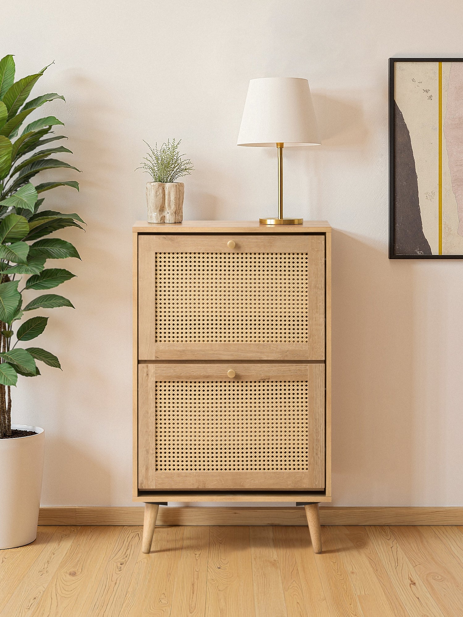 Manila Rattan 2 Door Flip Down Shoe Storage Cabinet