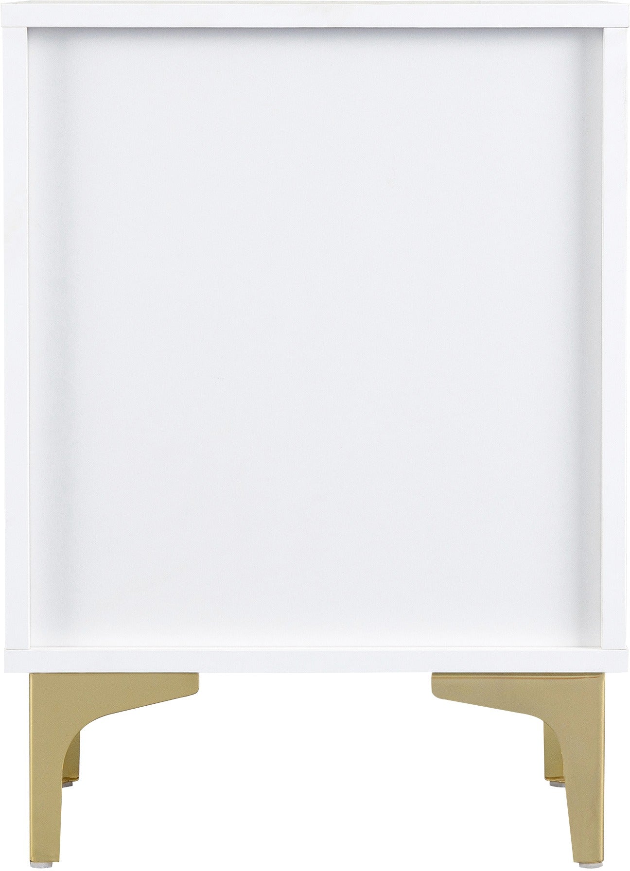 Available in two distinct colourways, this bedside table is engineered to suit various interior palettes. Choose the Oak finish with black hardware for a grounded, organic aesthetic that leans into modern industrialism, or opt for the White and Gold combination to create a bright, luxe atmosphere with a nod to mid-century glamour. Supported by elegant, tapered legs, this unit provides high-capacity storage while maintaining a light and airy footprint.
