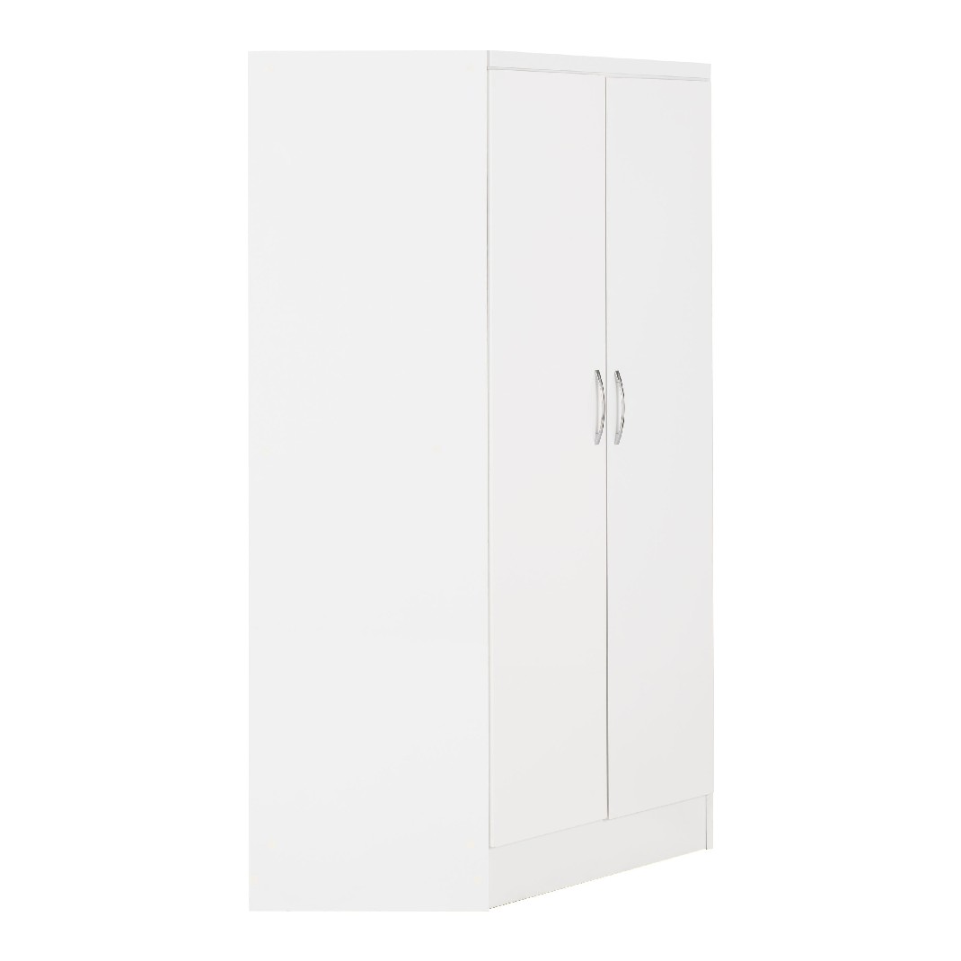 Nevada 2 Door Corner Wardrobe - White Gloss is backordered and will ship as soon as it is back in stock.