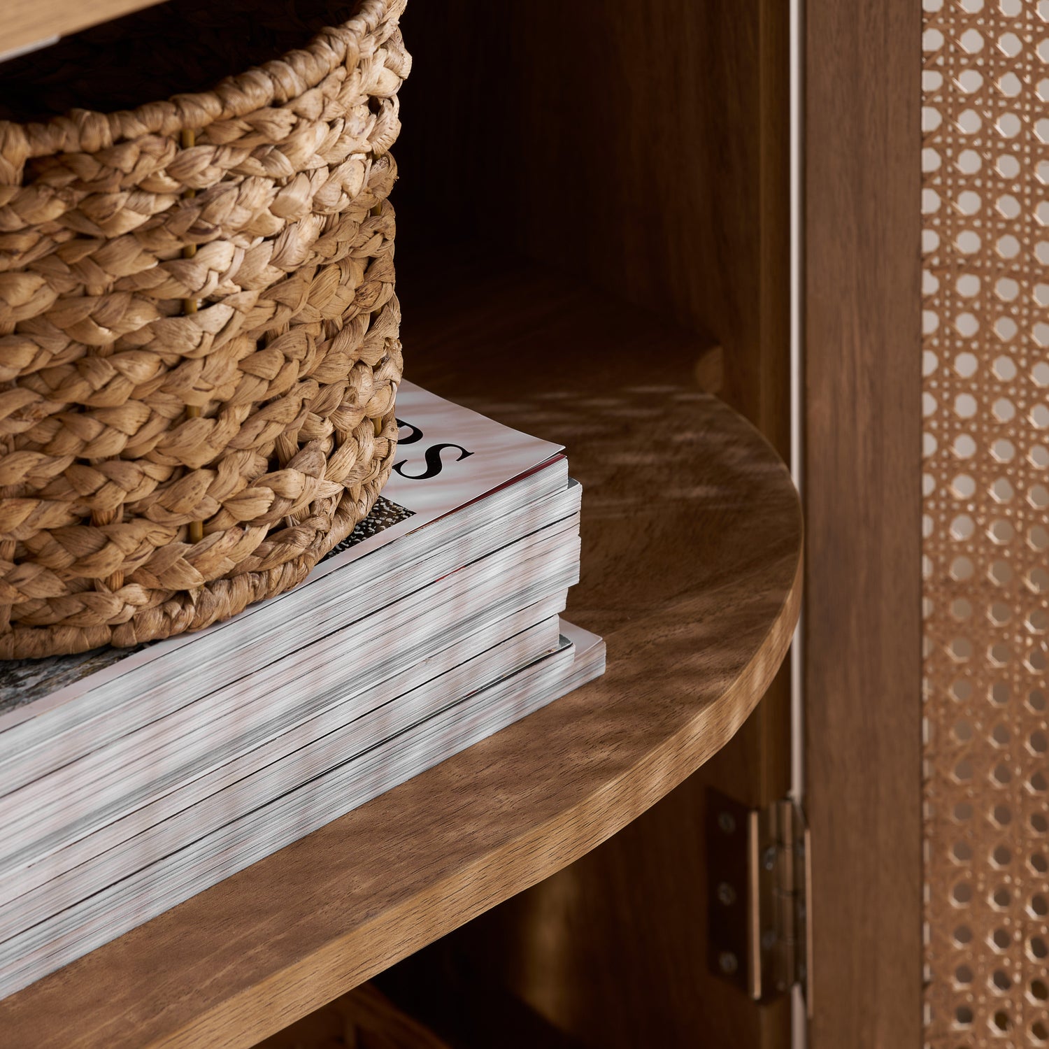 Discover timeless sophistication with the exquisite Noah two door sideboard. This stunning piece seamlessly blends traditional artisanship with contemporary aesthetics, bringing a touch of serene refinement to any living space. Each curve of the table is gently softened, complemented by delicate bevels that exude modernity. The intricately woven rattan front adds an eye-catching yet gracefully reserved pattern. With its warm, neutral palette and smooth wooden surfaces, the Noah two door sideboard offers versatility and invites a tactile experience. Ideal for those who appreciate subtle design, this piece promises to elevate your home with its timeless charm and a hint of modern allure.