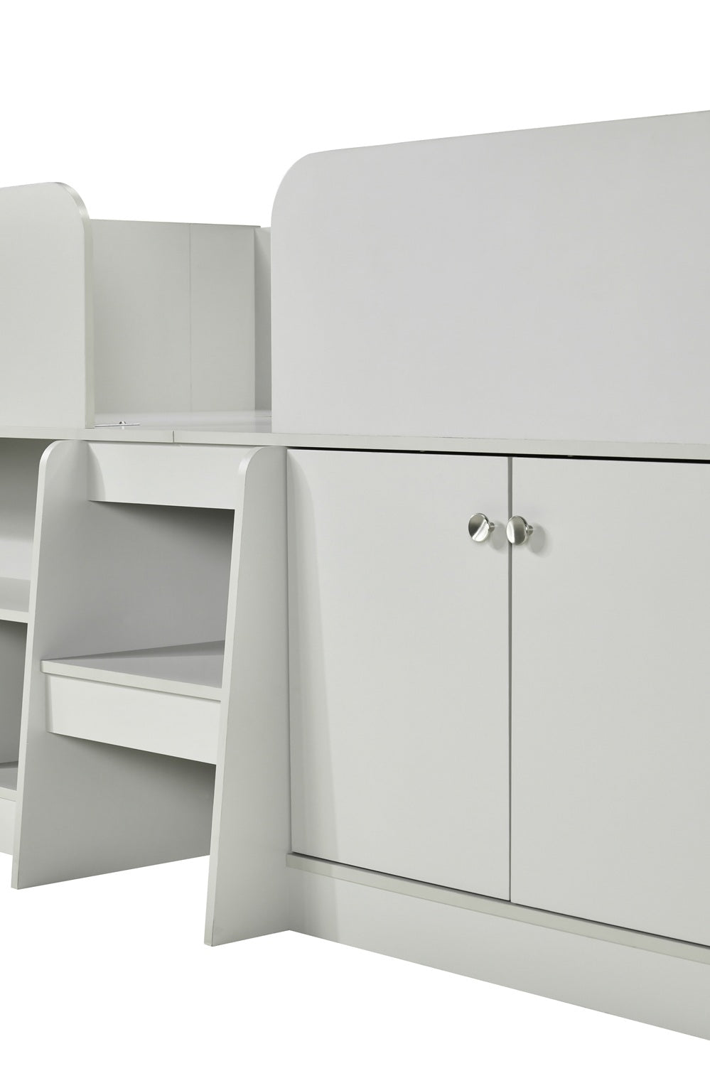 The integrated open shelving alongside a cupboard with hidden internal shelving is perfect storage for toys, clothes, or books, keeping the room tidy and organised. Finished in a clean white tone, the Nova bed blends seamlessly with a variety of decor styles, from playful to minimalist.