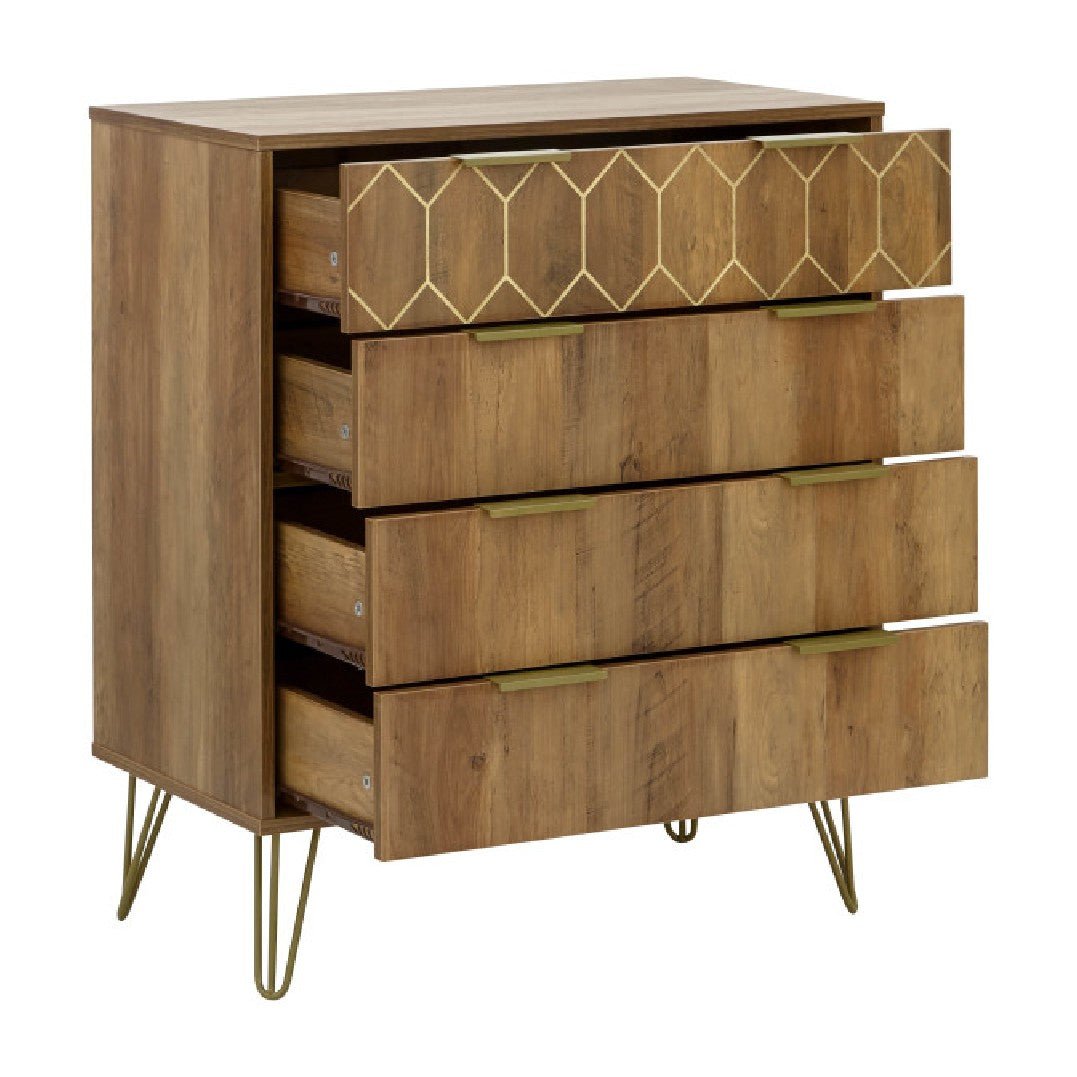 Proving that bedroom storage can be super-stylish as well as practical, this set of drawers from the Orleans range is worth a second look. The sleek mango-effect construction accommodates four full-width drawers – perfect for folded items like jumpers and sportswear. Taking its inspiration from the influential icons of the mid-twentieth century, the design details are exquisite: delicate engraved metallic inlay married with slender drawer pulls. For a final flourish, the drawers are mounted on a set of contrasting hairpin legs.