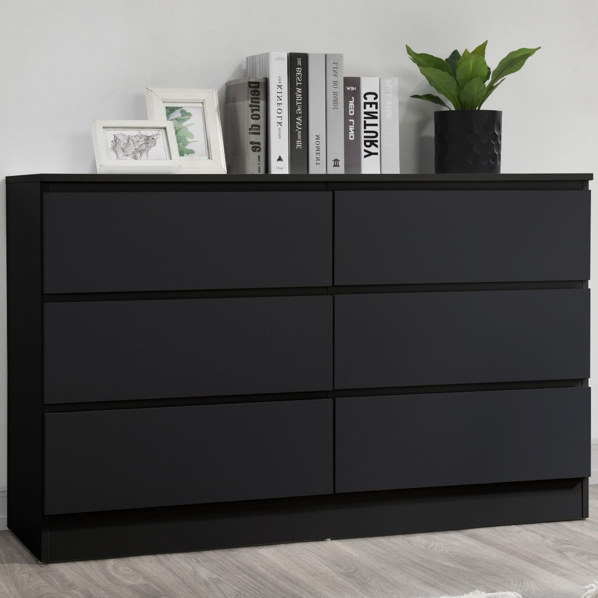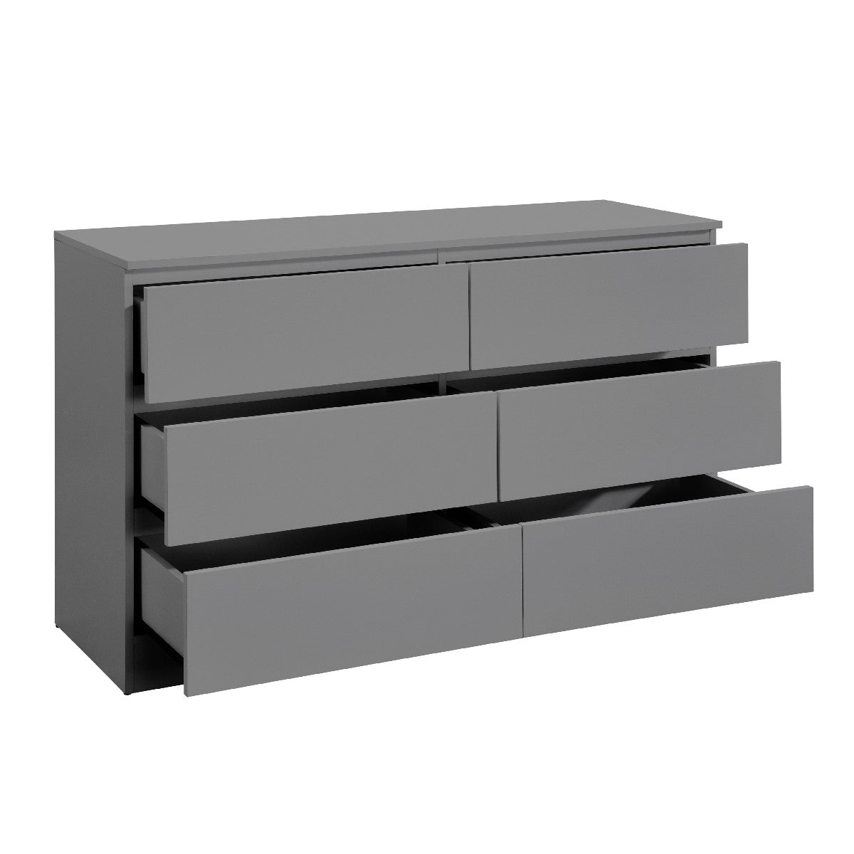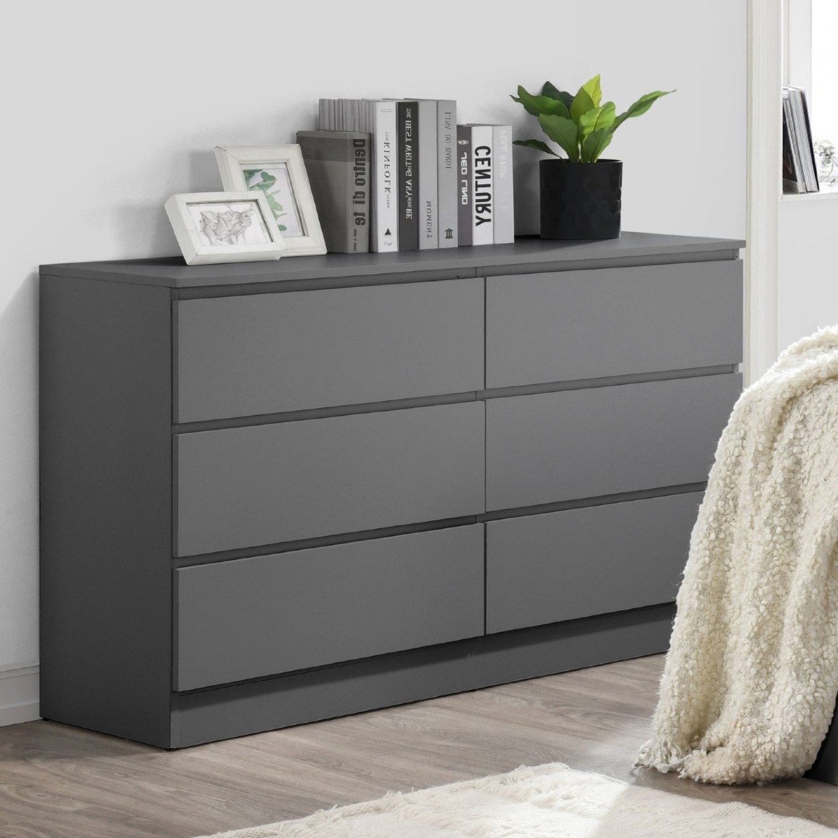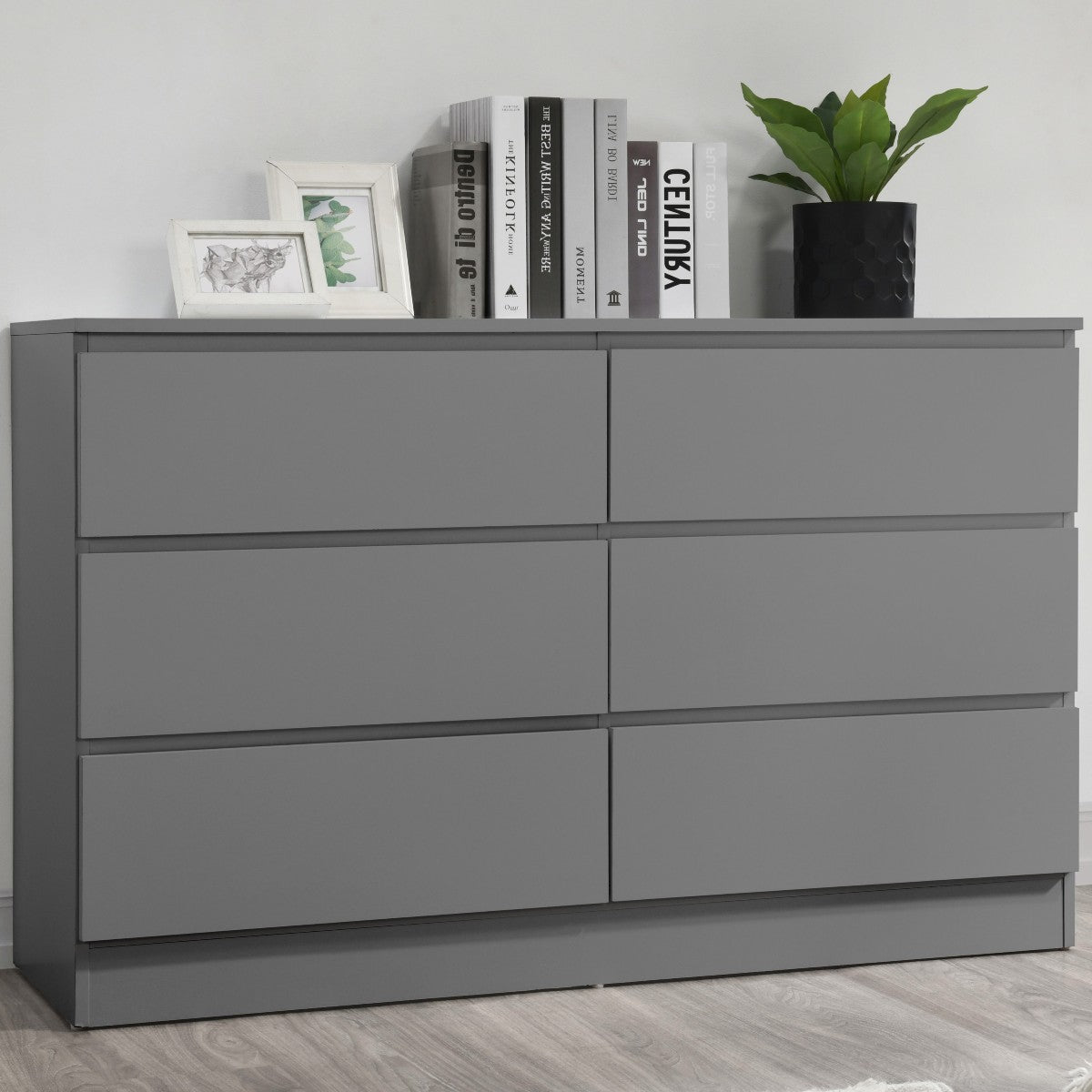 A large top surface area provides an excellent display area for your favourite decorative items, such as vases, photo frames, or plants, allowing you to personalise and enhance the visual appeal of your space. The sleek and contemporary design of the 6 Drawer Chest adds a touch of elegance to any room. The smooth-gliding drawers make accessing your belongings effortless, while ergonomic handleless entry adds a touch of refinement to the overall design.