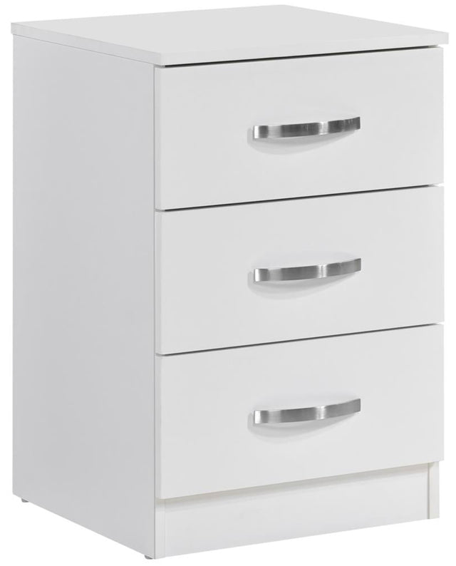 The Paddington 3 Drawer Bedside Table is the perfect blend of style and practicality, designed to suit any modern bedroom décor. Finished in fresh white, it is available with either chrome or black handles, giving you the flexibility to match your interior.