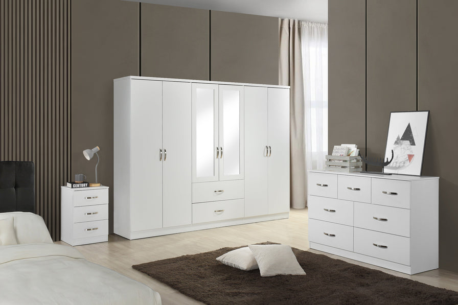 - Complements the Paddington 6 Door 2 Drawer Mirrored Wardrobe