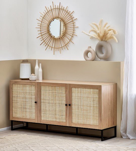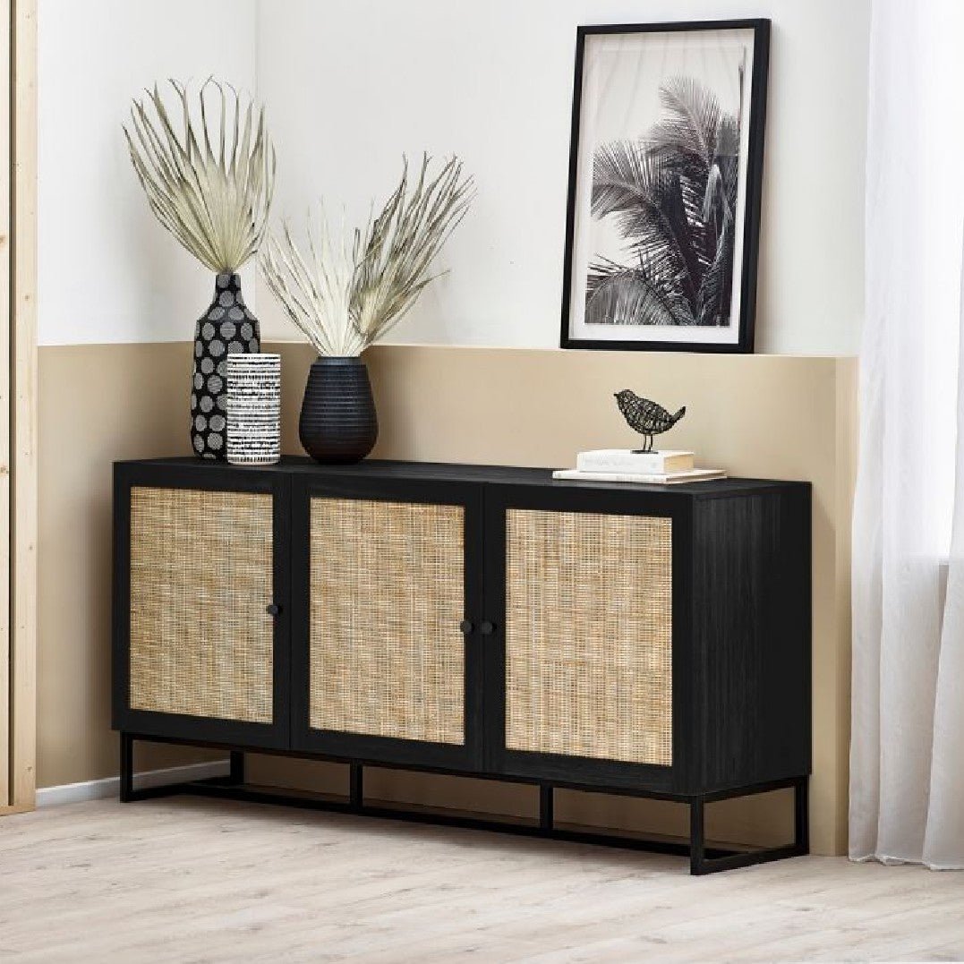 Padstow 3 Door Sideboard - Black and Rattan is backordered and will ship as soon as it is back in stock.