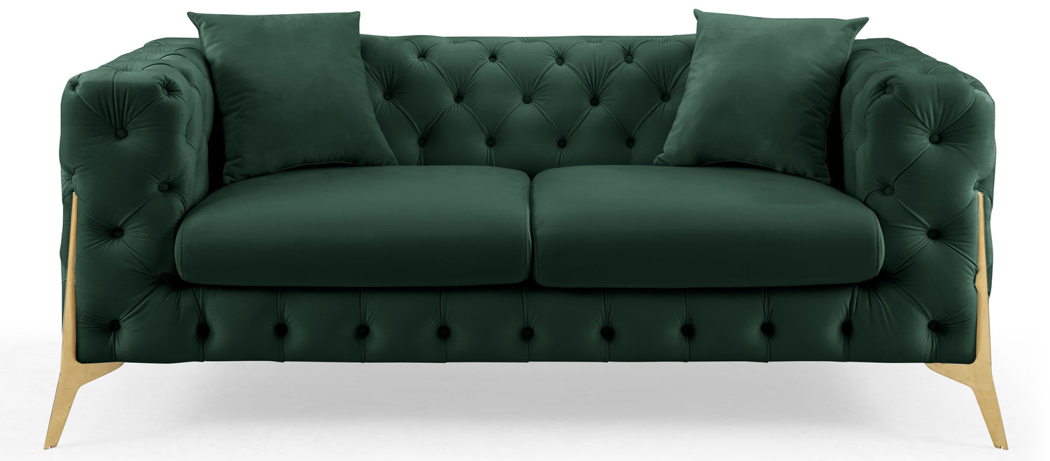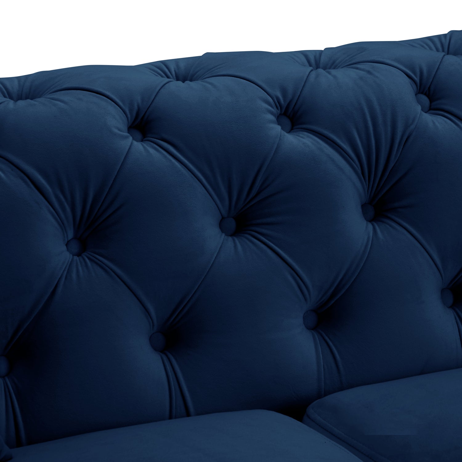 - Timeless Chesterfield design with rolled arms and button-tufted back