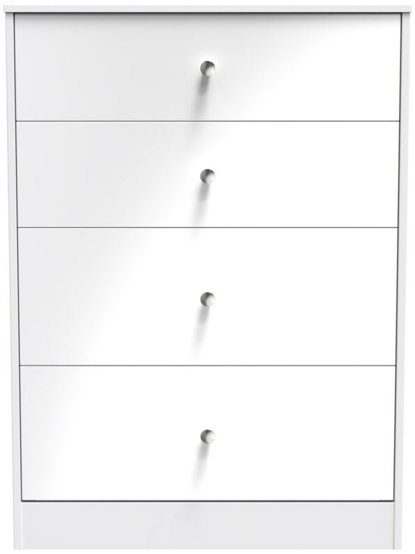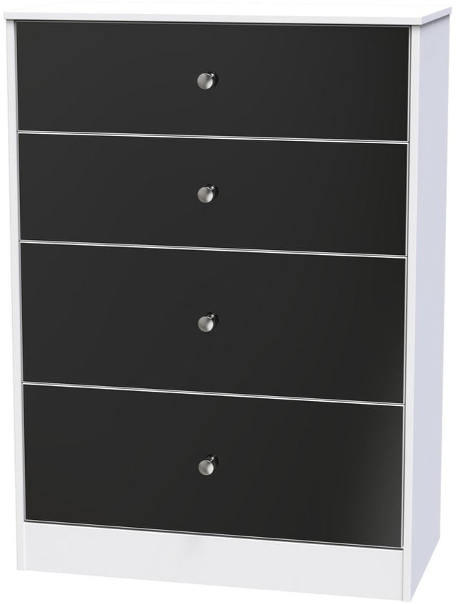 The Pastel 4 Drawer Deep Chest Dresser in Black Gloss and White is a sleek and modern storage solution designed to elevate any bedroom interior. With four spacious deep drawers, this chest of drawers provides ample storage for clothing, accessories, or household items, helping to keep your home organised. Crafted with solid metal knob handles and a scratch-resistant finish, this dresser is both practical and stylish. Ready assembled and available in four versatile colours.