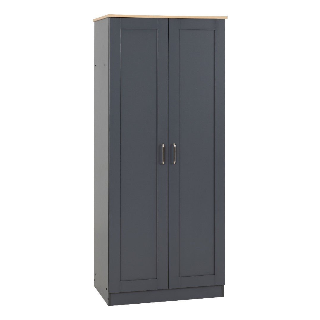 Portland 2 Door Wardrobe - Grey and Oak is backordered and will ship as soon as it is back in stock.