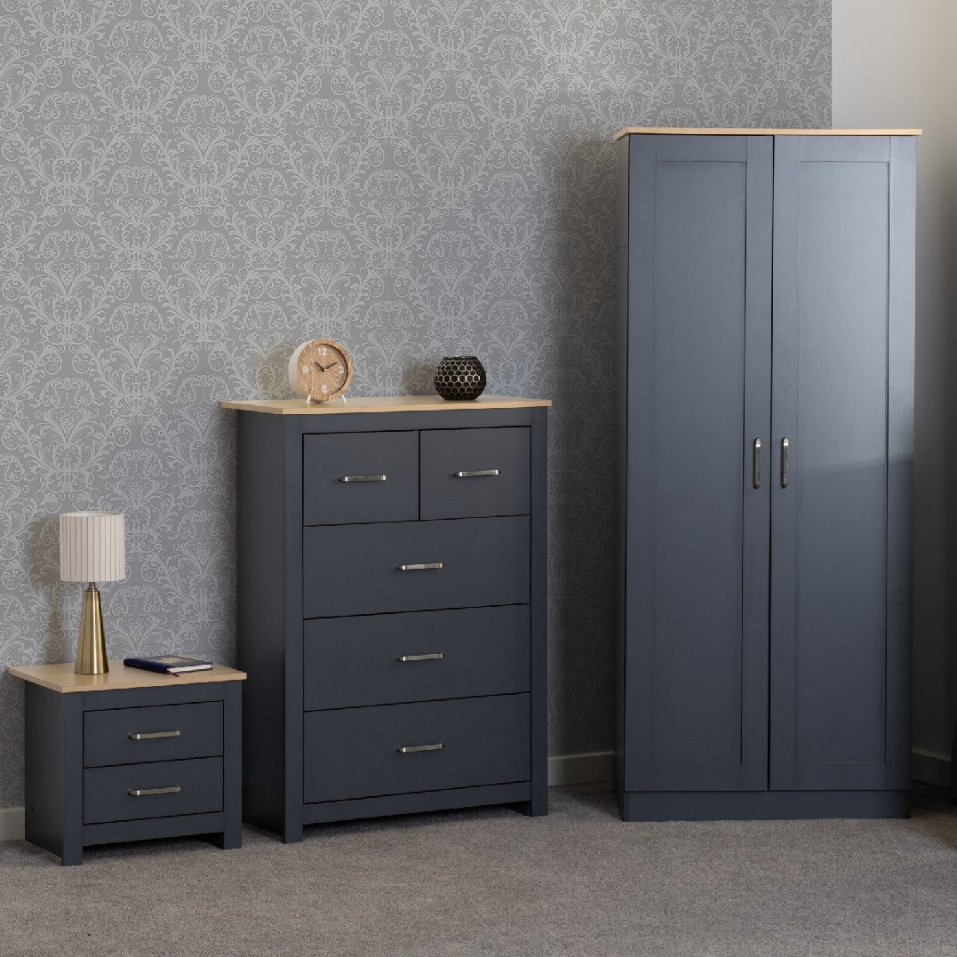 Introducing the elegant Portland Grey and Oak 2 Door Wardrobe from our stunning Portland collection. This wardrobe seamlessly integrates into any home decor. Its timeless oak effect top adds a touch of tradition, while the sleek modern grey finish enhances its contemporary appeal. With two inner shelves and a full width hanging rail, this wardrobe offers ample storage for your clothing requirements.