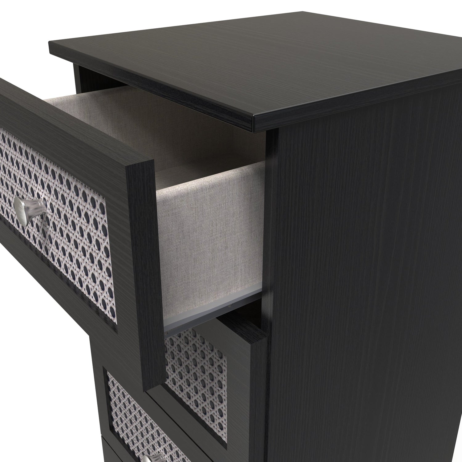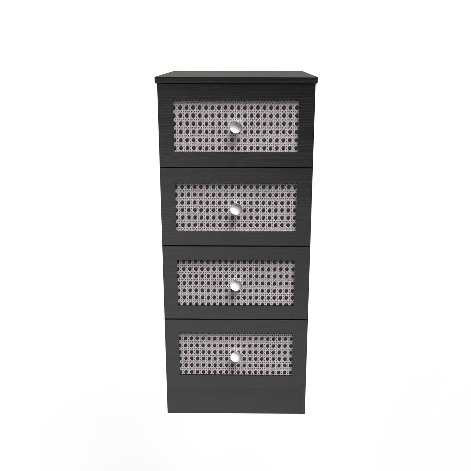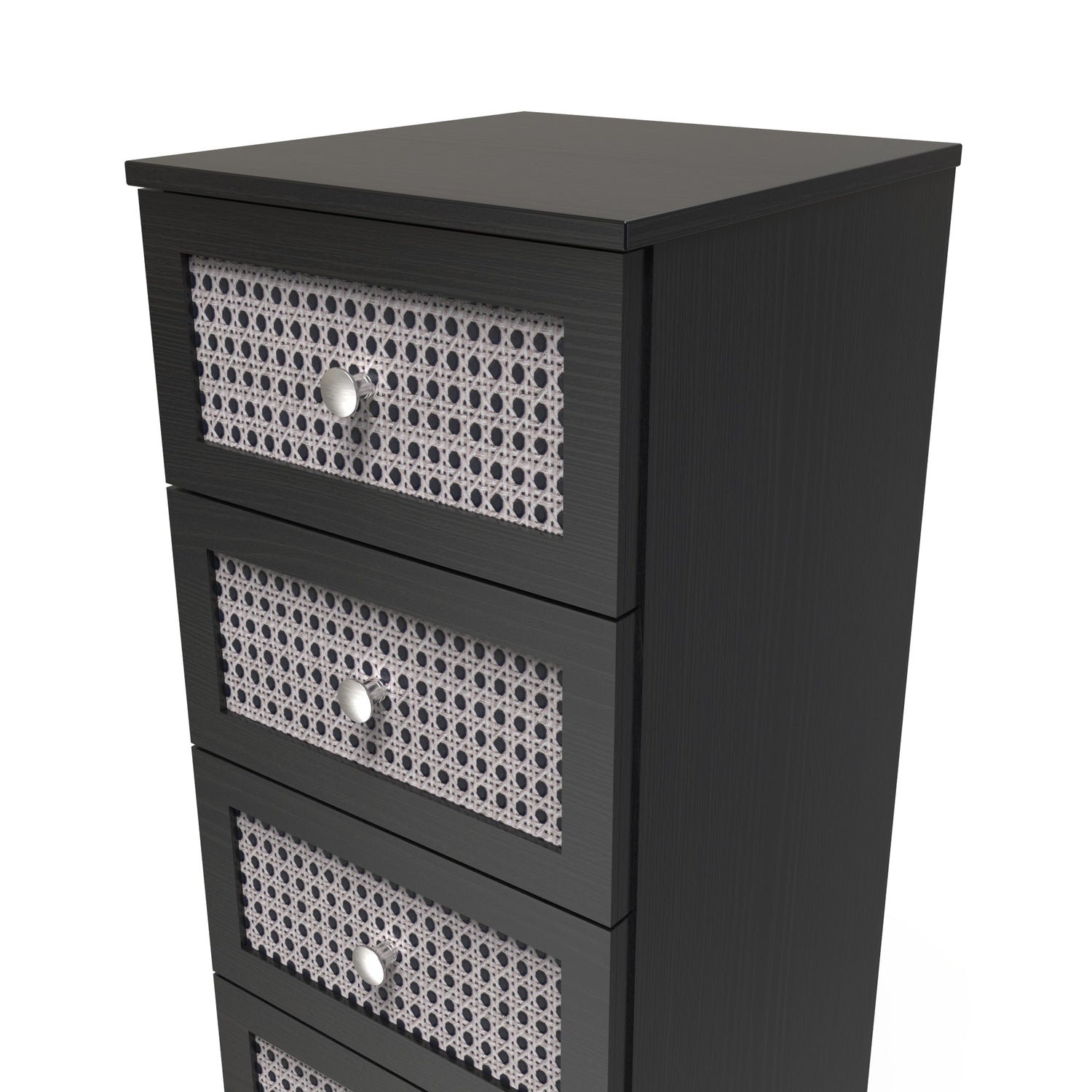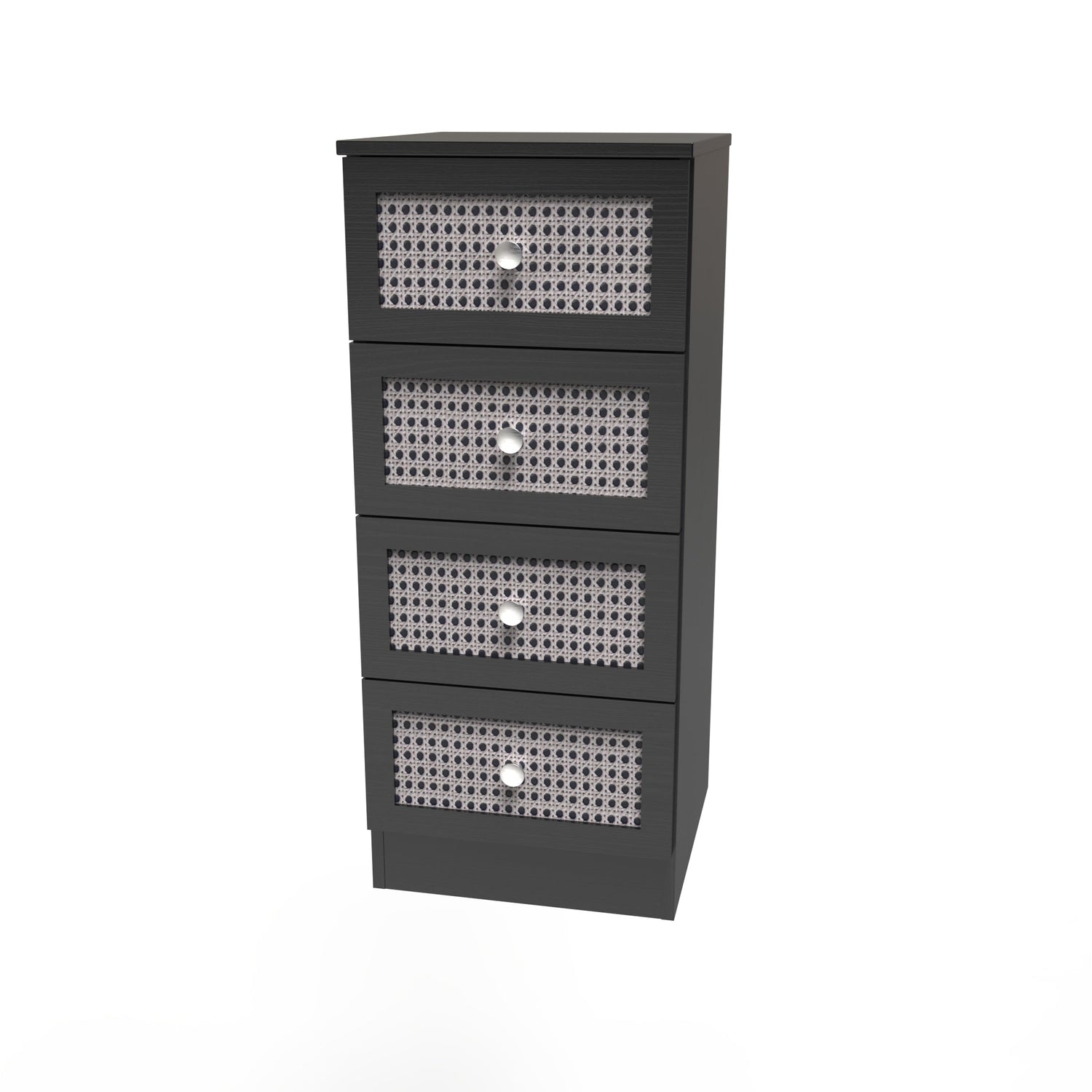 Rattan 4 Drawer Narrow Tallboy Chest - Black and Ash is backordered and will ship as soon as it is back in stock.