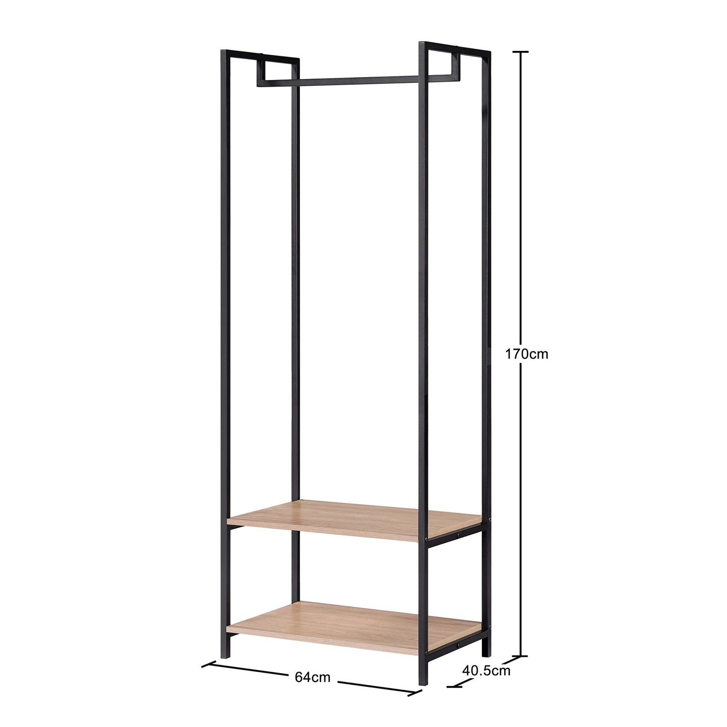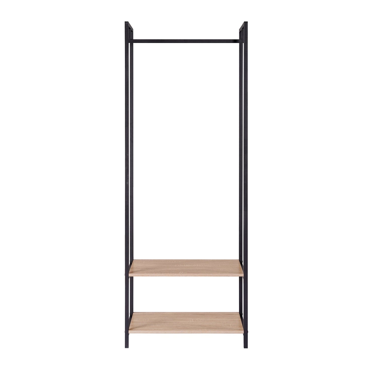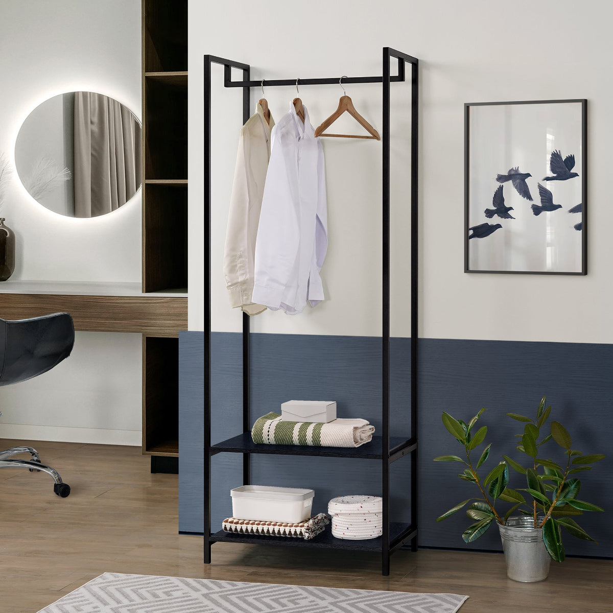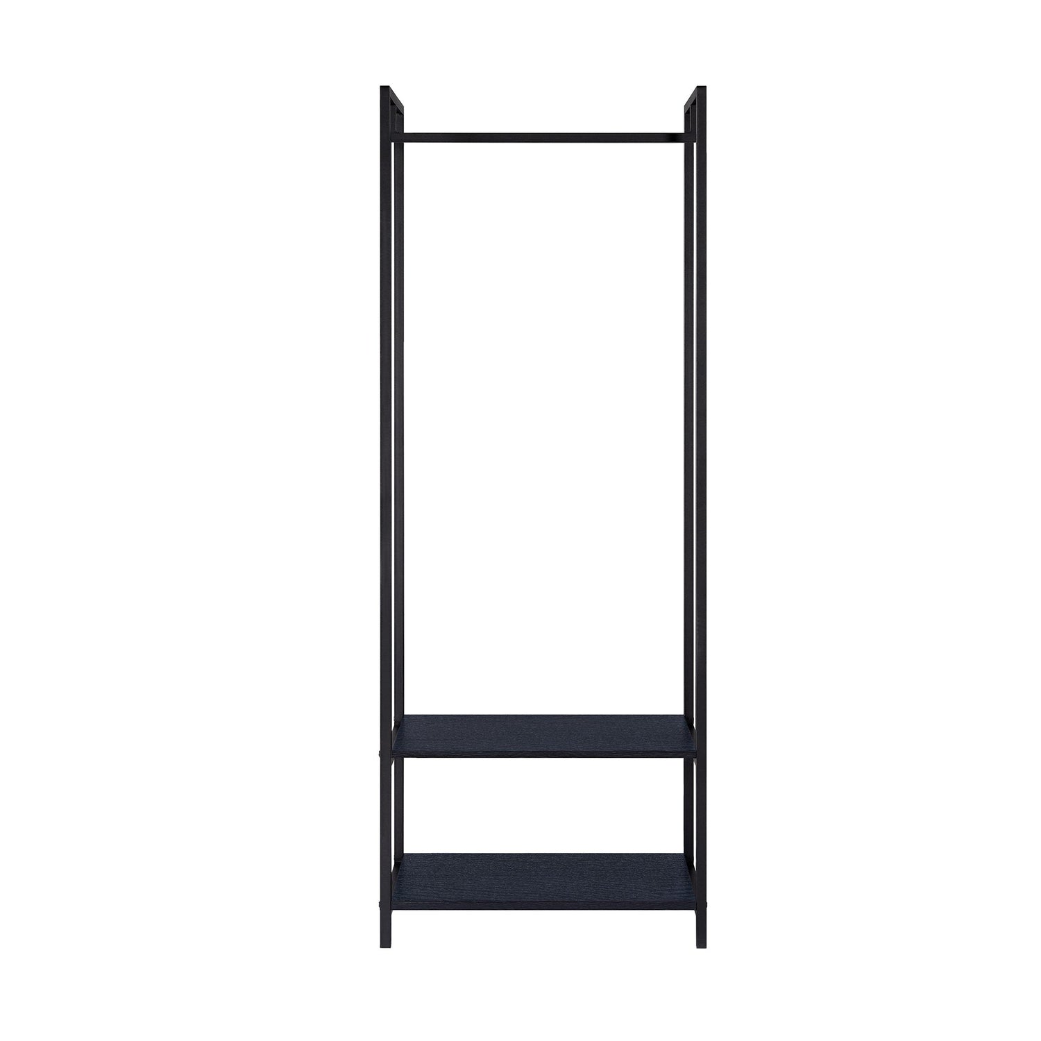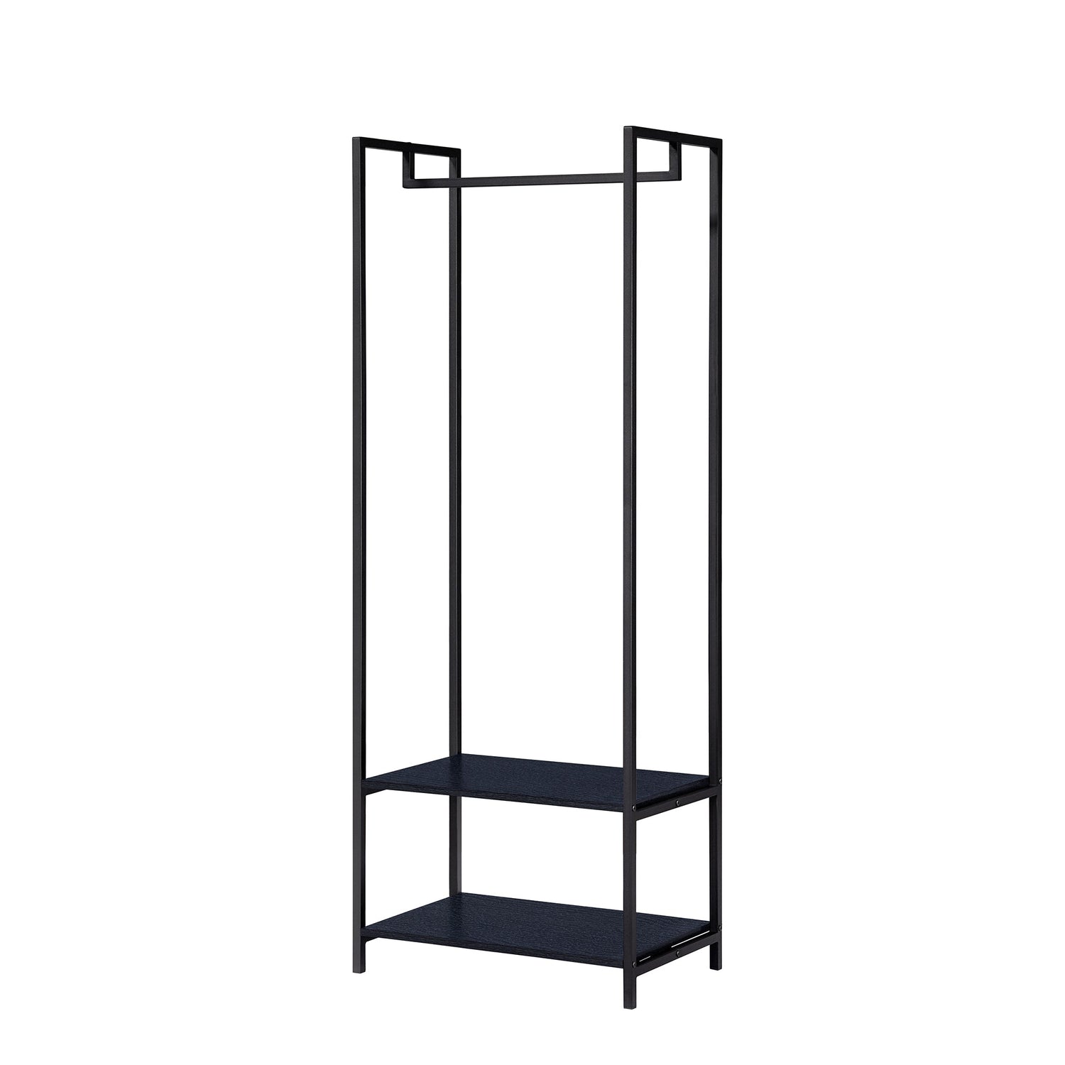 This modern 2-shelf open wardrobe is a stylish and functional addition to any bedroom or living space. Crafted with a sleek black metal frame, it offers a minimalist aesthetic that complements various interior design styles.