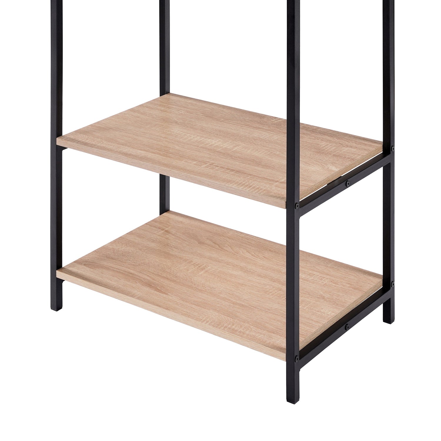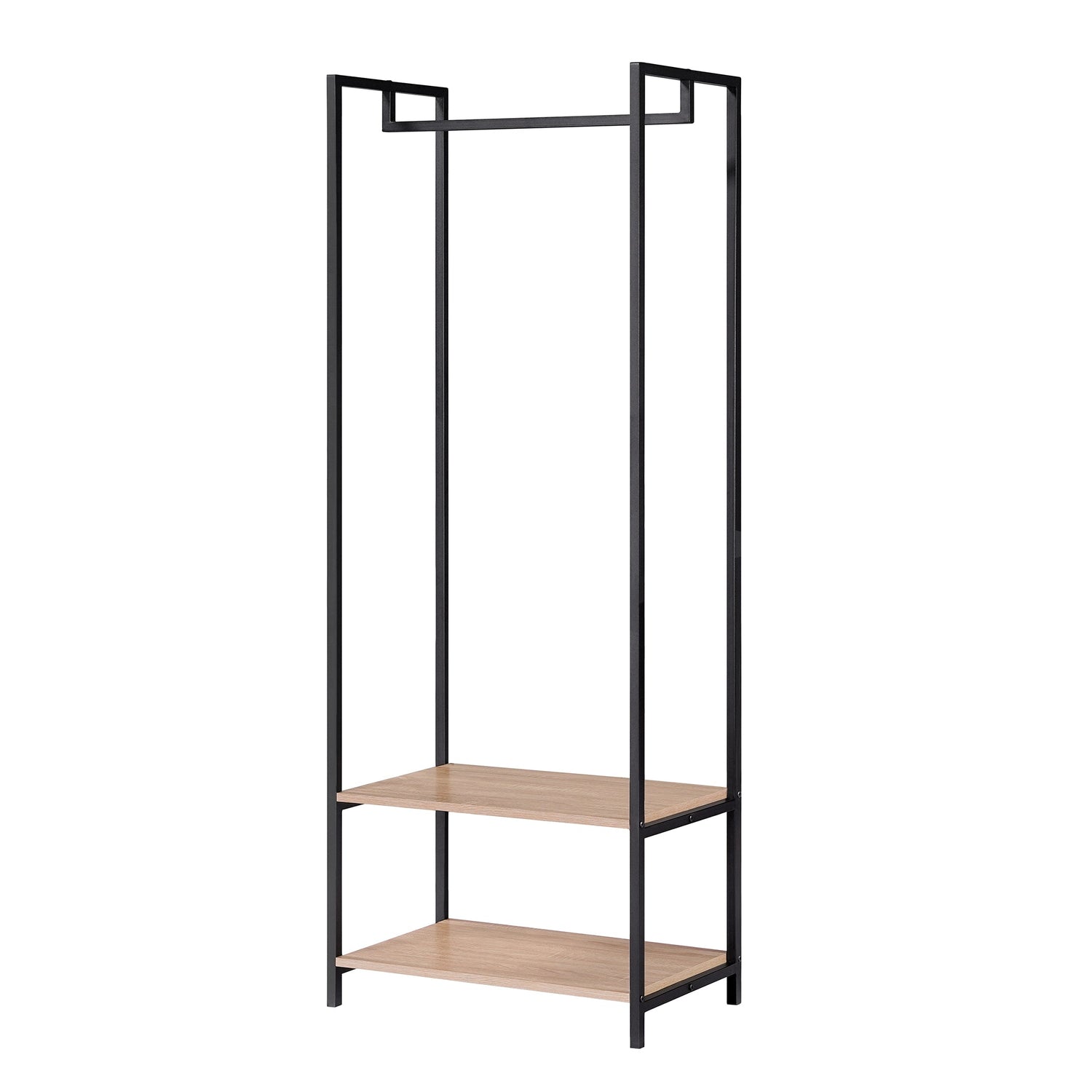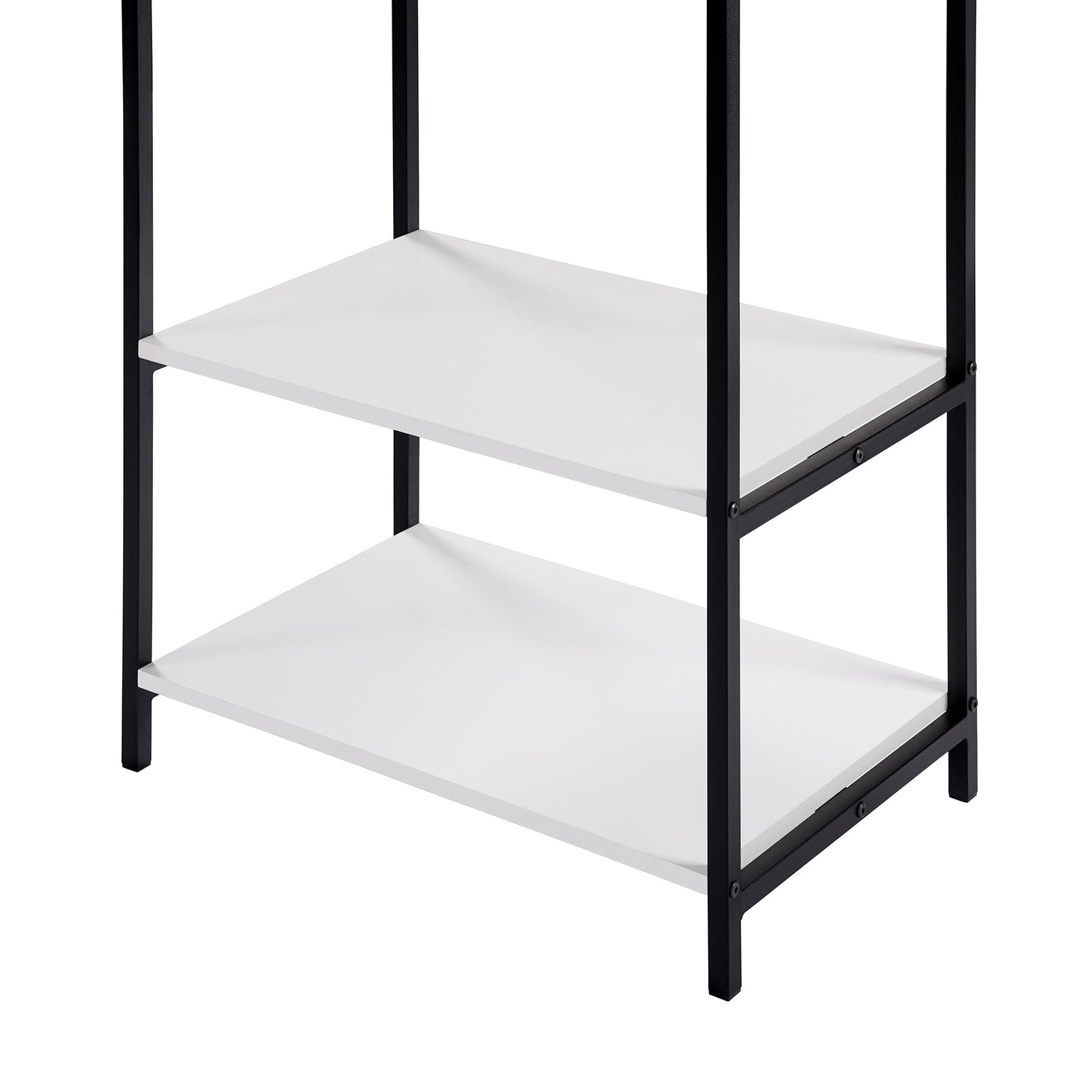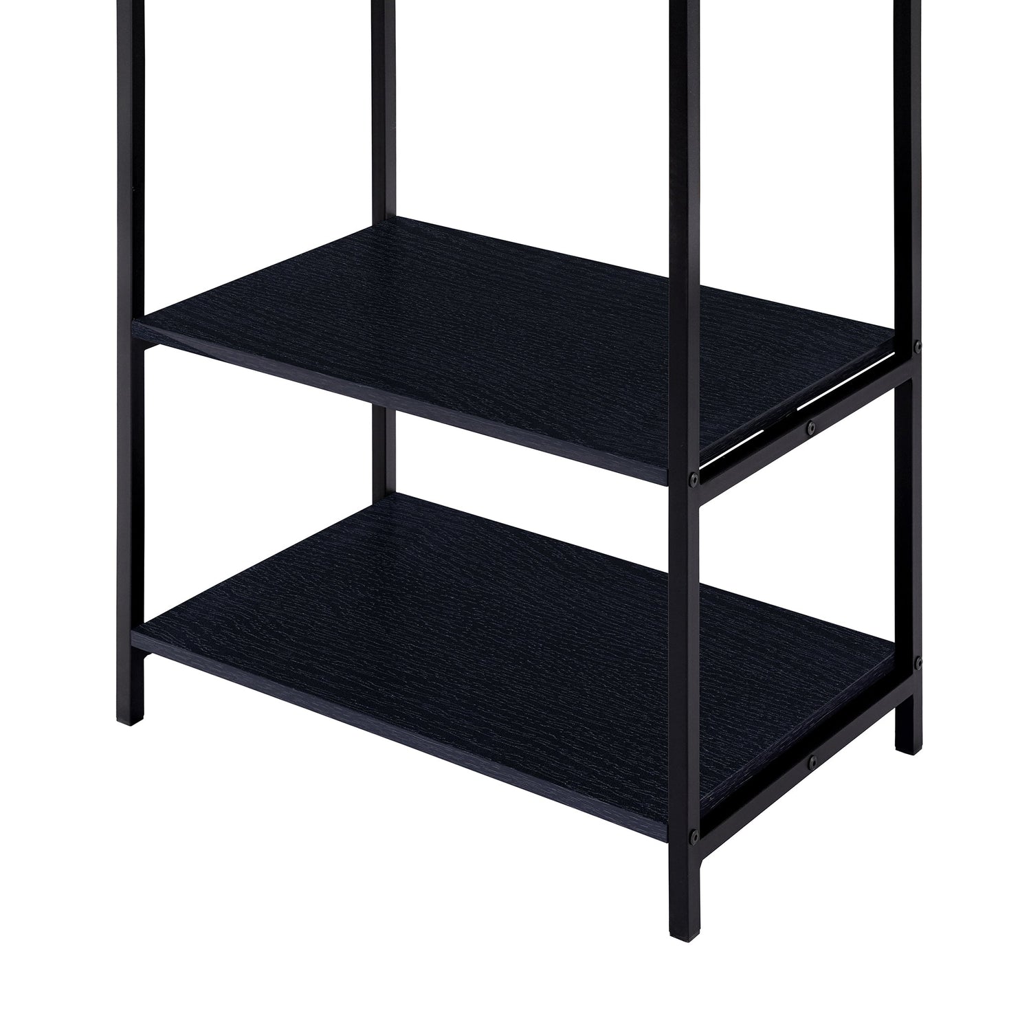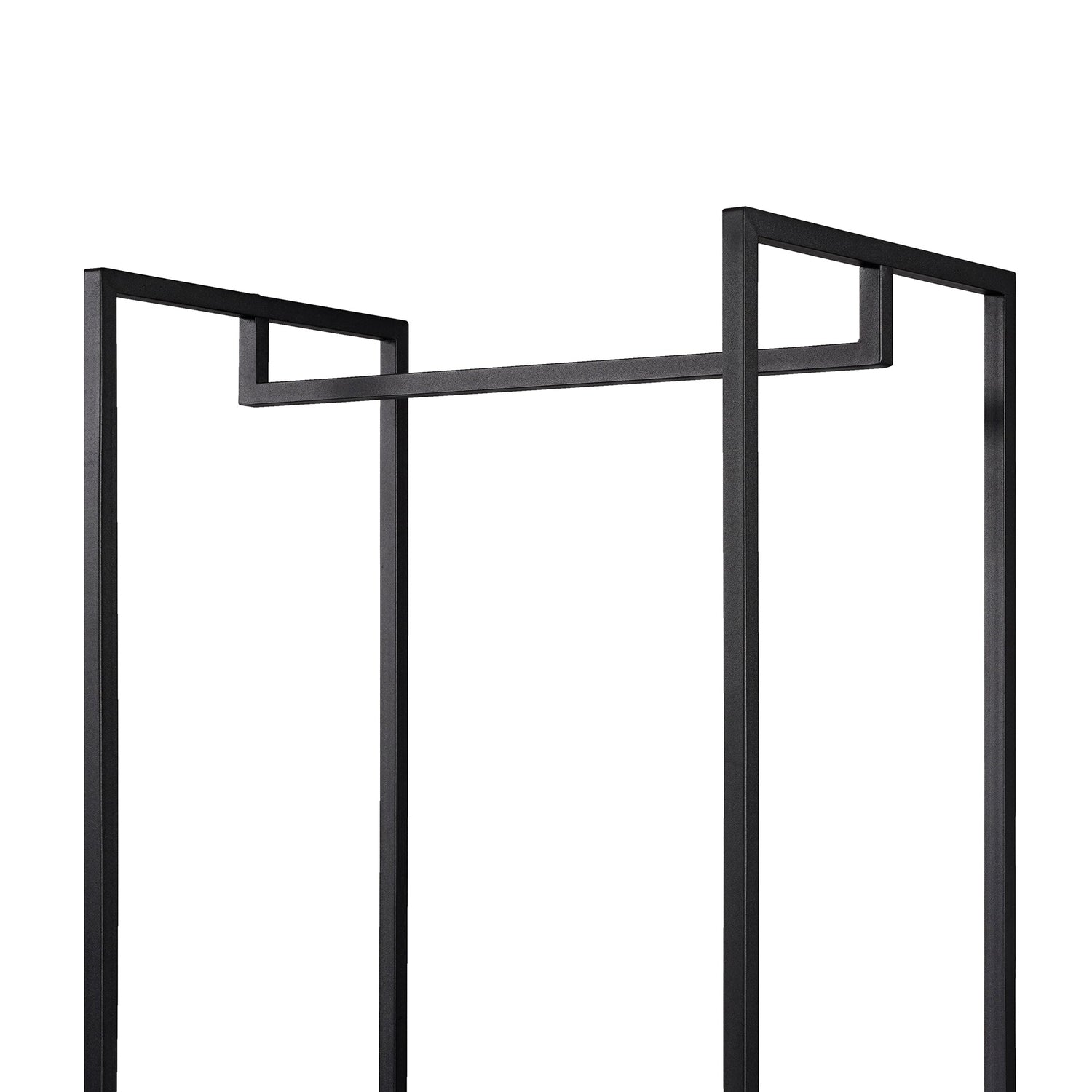 This modern 2-shelf open wardrobe is a stylish and functional addition to any bedroom or living space. Crafted with a sleek black metal frame, it offers a minimalist aesthetic that complements various interior design styles.
