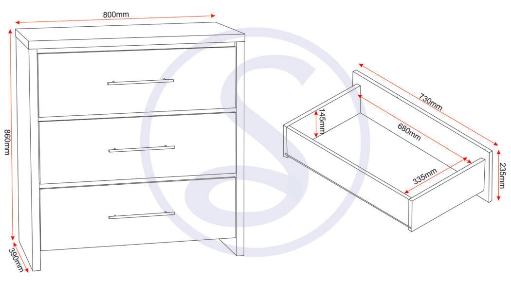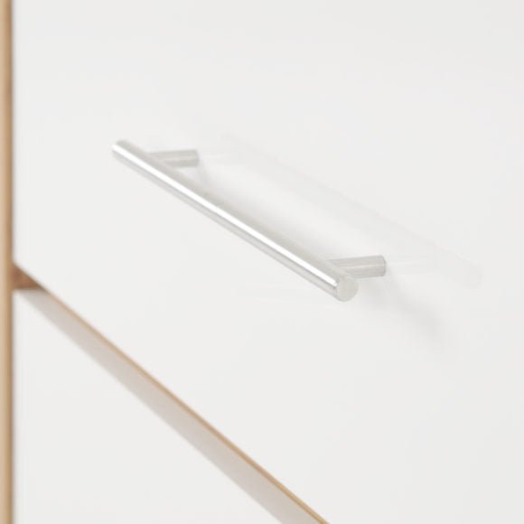 If co-ordination is your style, then the Seville range is for you. This 3 drawer chest is framed in a light oak effect veneer and white gloss fronts. Perfect teamed with other items from this collection, ideal for a modern bedroom