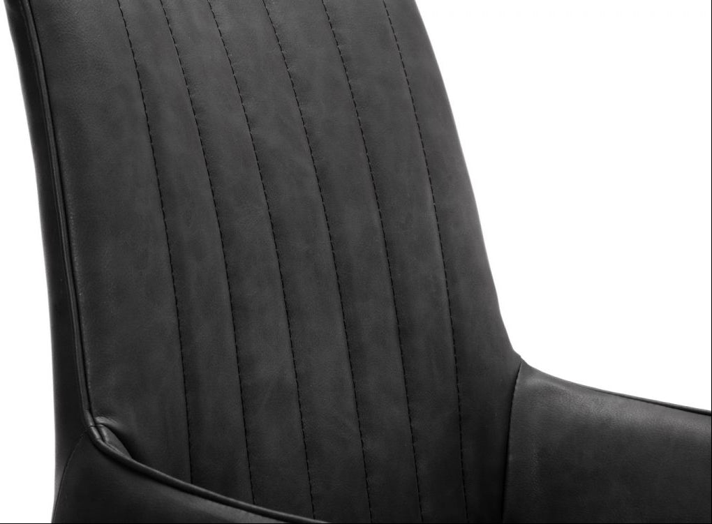 This Retro Soho Dining Chair is finished in an antique black faux leather with a striking black metal frame, sure to compliment any contemporary décor. The perfect match for the Brooklyn Dining Table to create an industrial, retro feel within any contemporary decor.