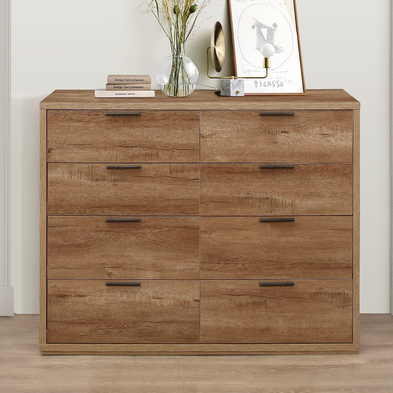 Add a touch of reclaimed design to your home with the Stockwell range, featuring a rustic oak effect finish and stylish black handles for an authentically rustic appearance. The Stockwell merchants chest boasts 8 drawers, perfect for tidily storing smaller belongings and larger items.Creating a traditional farmhouse ambiance is effortless with the Stockwell range, a classic style seamlessly adaptable to both city flats and cosy cottages.