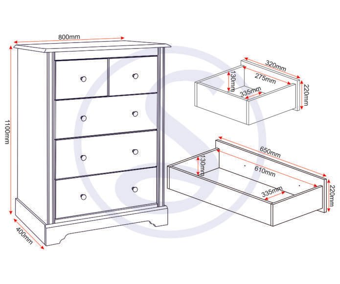 With its stylish appearance and practical design, the Stratford 3+2 Drawer Chest offers a perfect blend of storage and elegance, helping to keep your home tidy and organised
