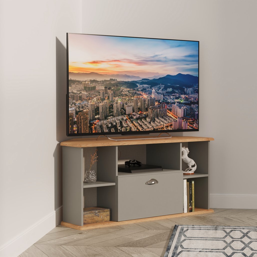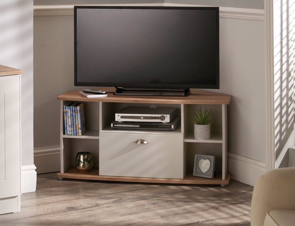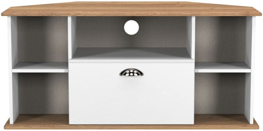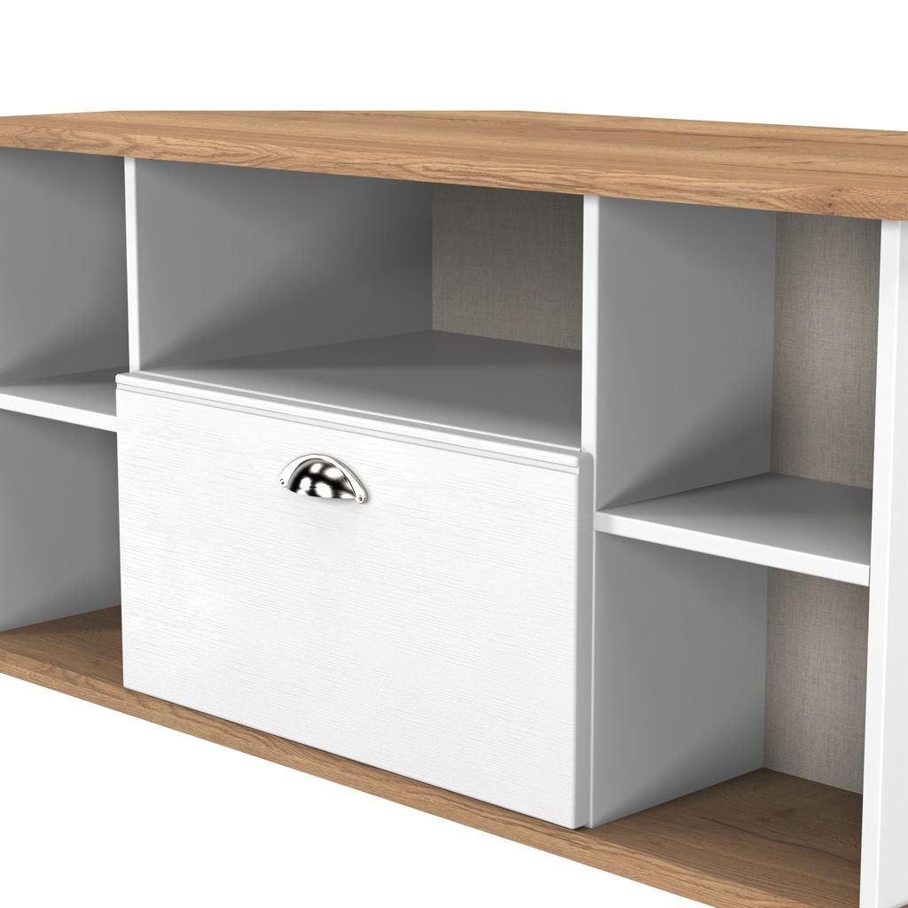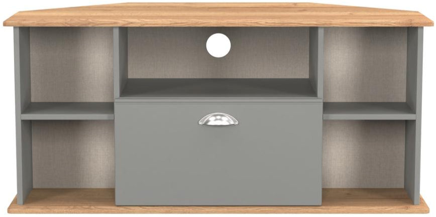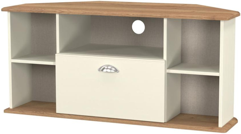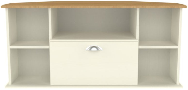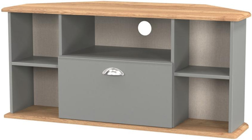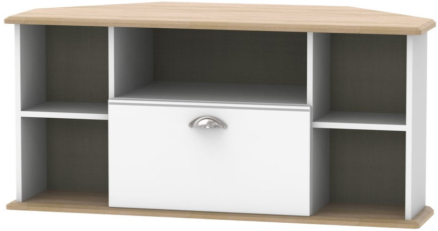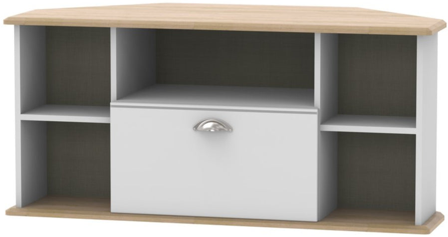 Victoria 1 Drawer Open Shelf Corner TV Unit with Riviera Oak Top
