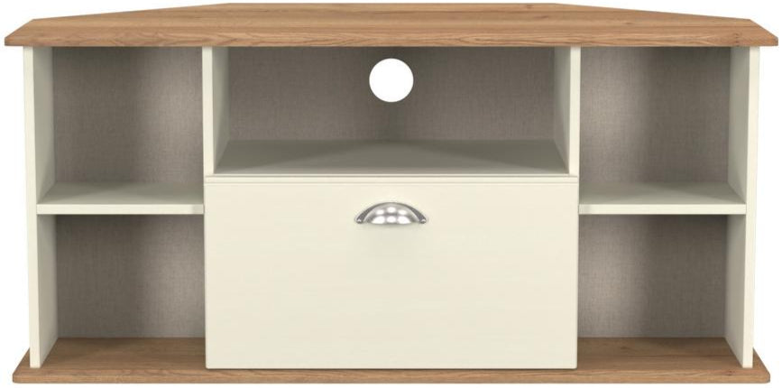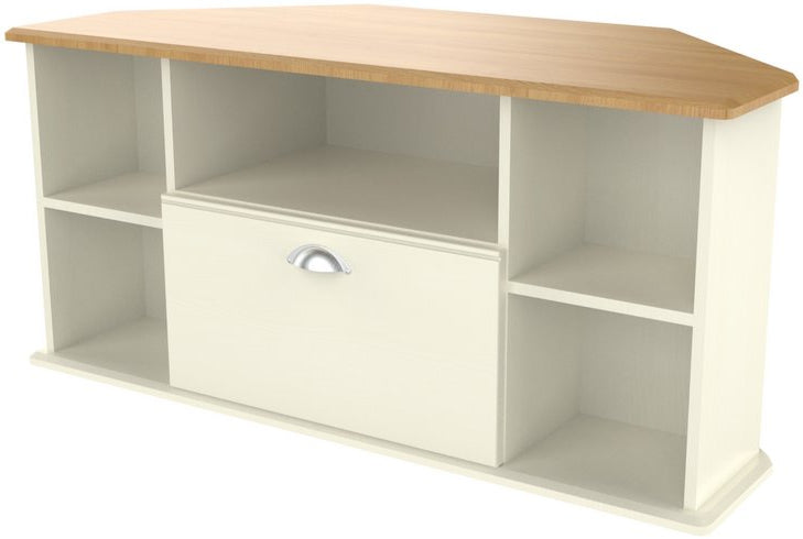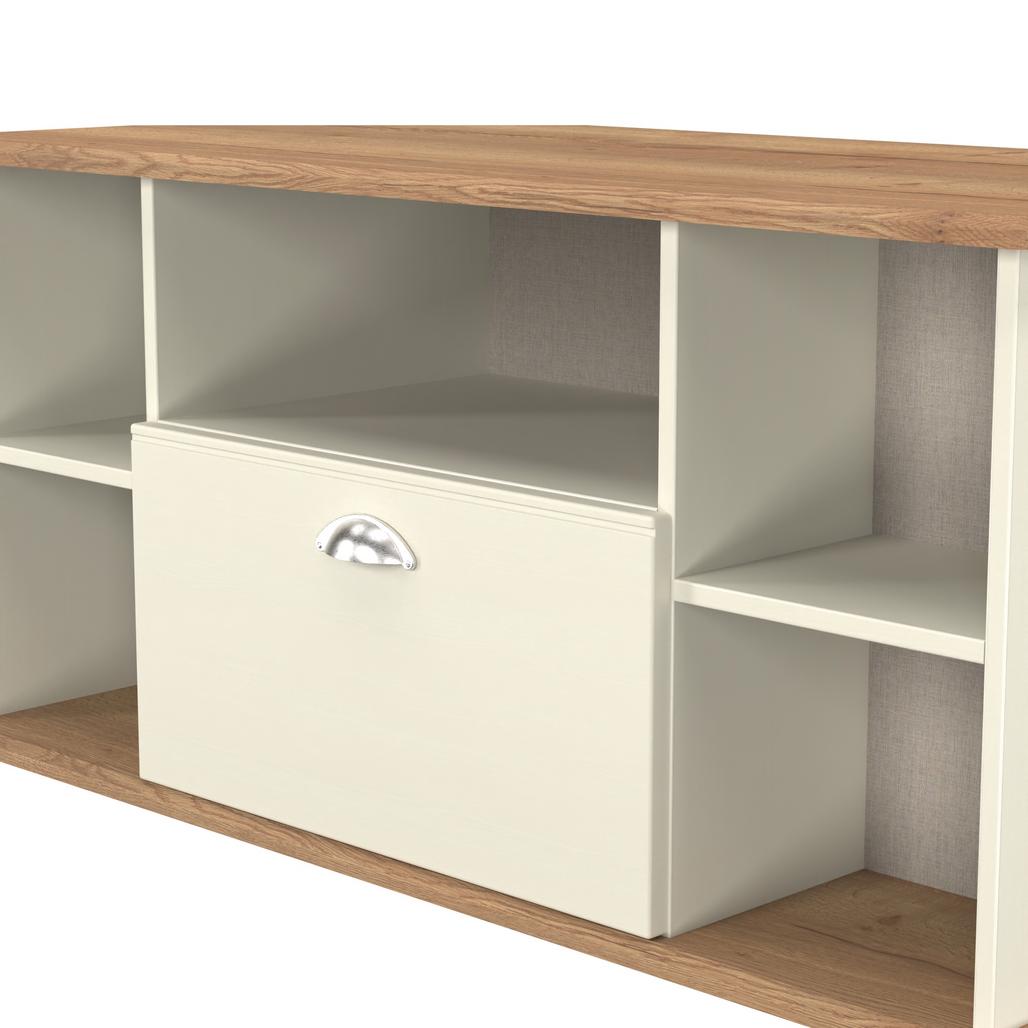 Victoria 1 Drawer Open Shelf Corner TV Unit with Riviera Oak Top - Cream Ash is backordered and will ship as soon as it is back in stock.