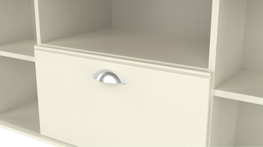The Victoria 1 Drawer Open Shelf Corner TV Unit in Cream Ash is the perfect blend of style and practicality. Designed to fit neatly into the corner of your living room, this corner TV unit features a shaker-inspired look with a Riviera oak top, bringing a touch of modern country classic charm to your home. With one deep drawer for hidden storage and five open shelf sections, it offers ample space to display media, consoles, or decorative items, making it an ideal TV stand for any interior.