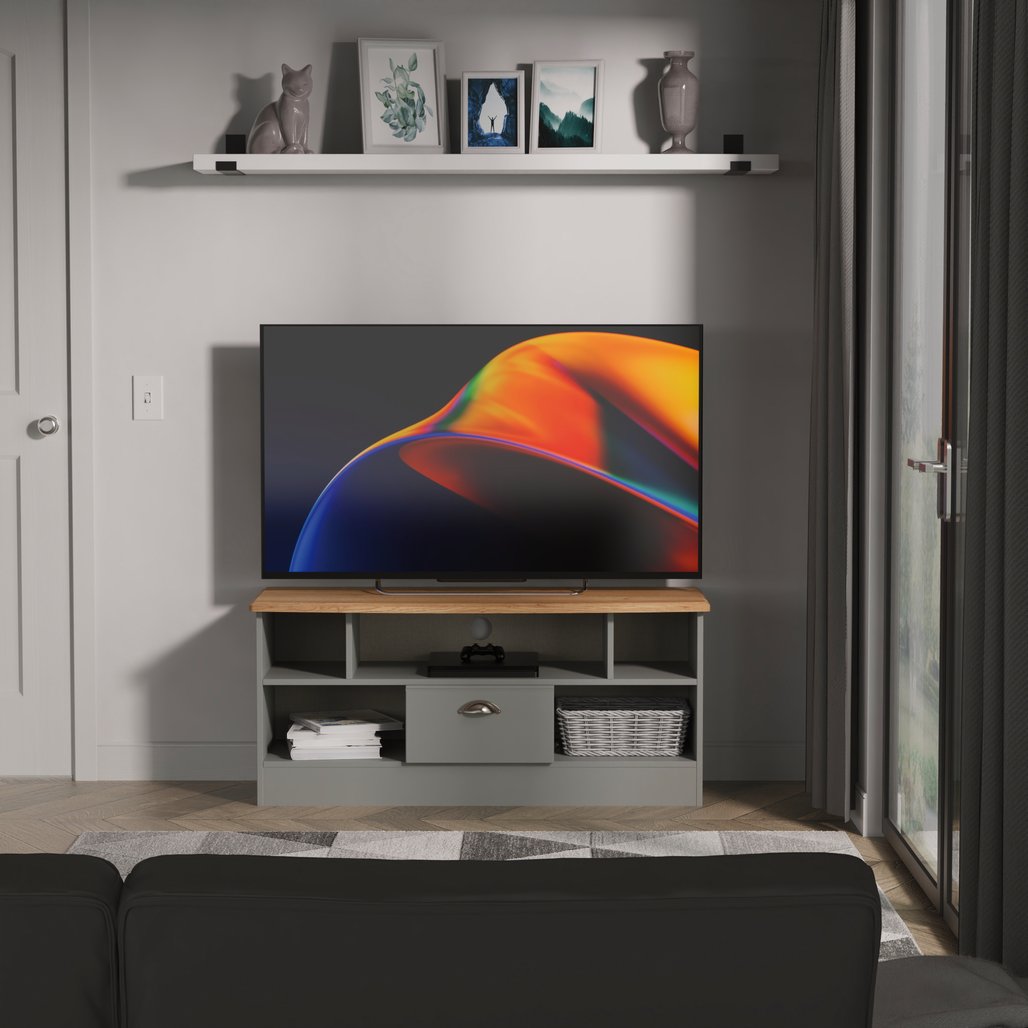 Victoria 1 Drawer Open Shelf TV Unit with Oak Top