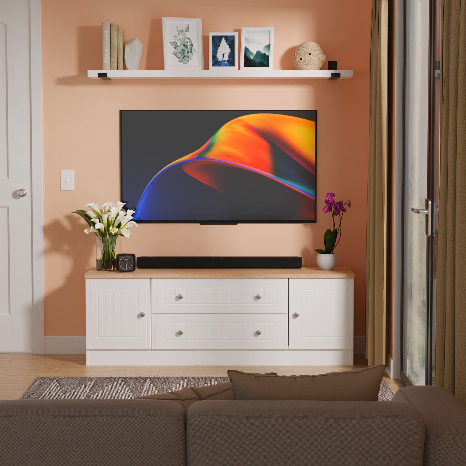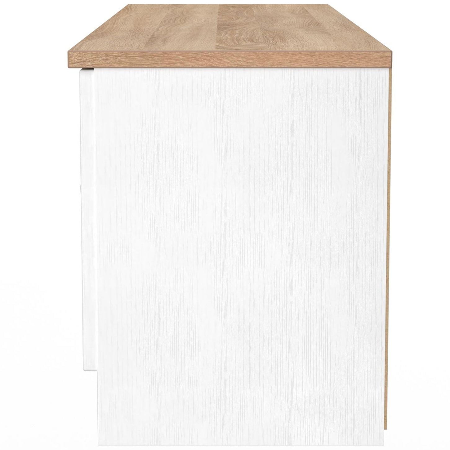 The Vienna 2 Door 2 Drawer Wide TV Unit with Oak Top blends elegant design with practical storage—perfect for contemporary living spaces. Its wide surface easily accommodates large TVs, while two drawers and two cupboard doors offer generous storage for media devices, accessories, and more.