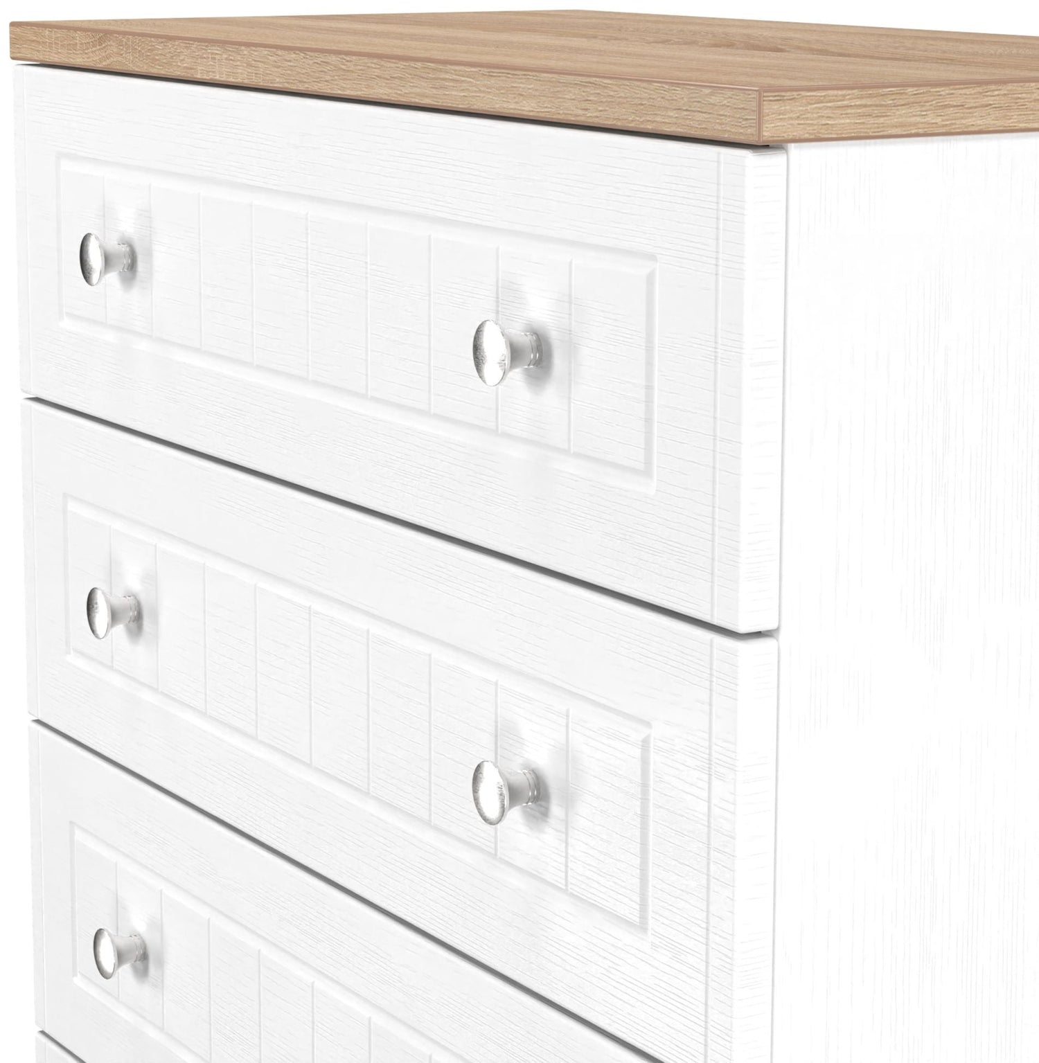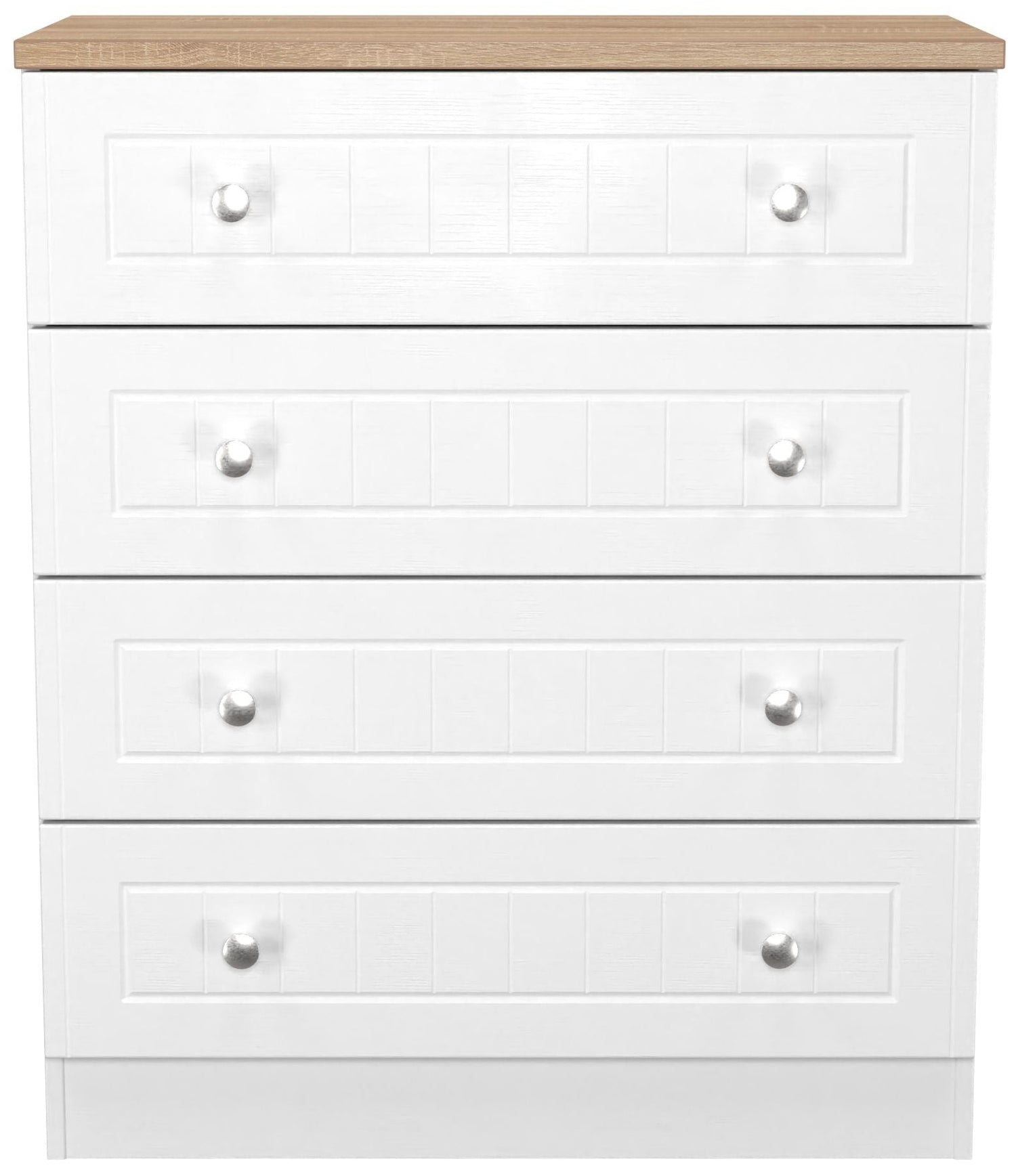 The Vienna 4 Drawer Chest brings together classic design and practical storage, making it a beautiful and functional addition to any bedroom. With its timeless silhouette and warm Bardolino Oak top, this chest delivers both style and substance.