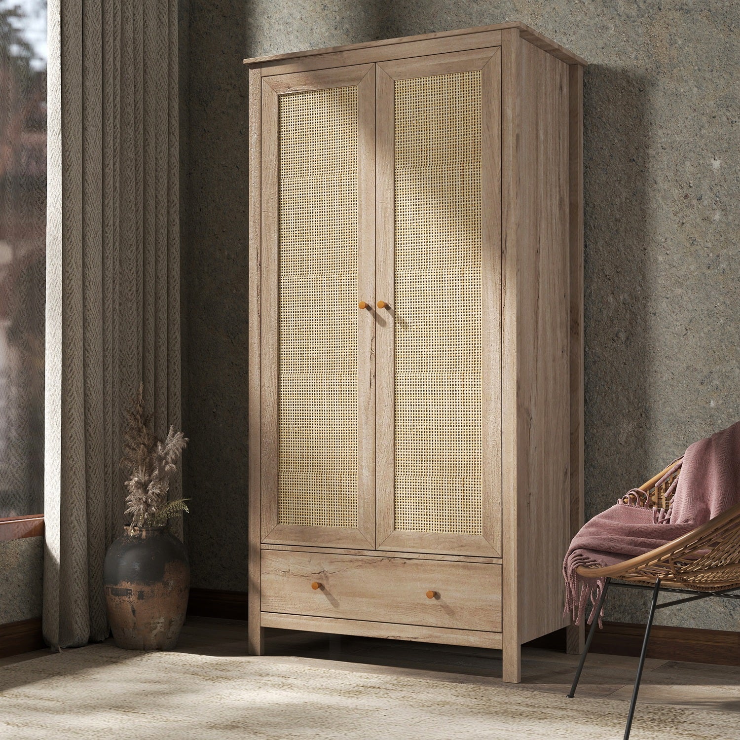 Willow Rattan 2 Door Wardrobe 3 Piece Bedroom Set - Oak is backordered and will ship as soon as it is back in stock.
