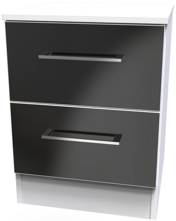 Worcester 2 Drawer Bedside Table - Black Gloss and White is backordered and will ship as soon as it is back in stock.