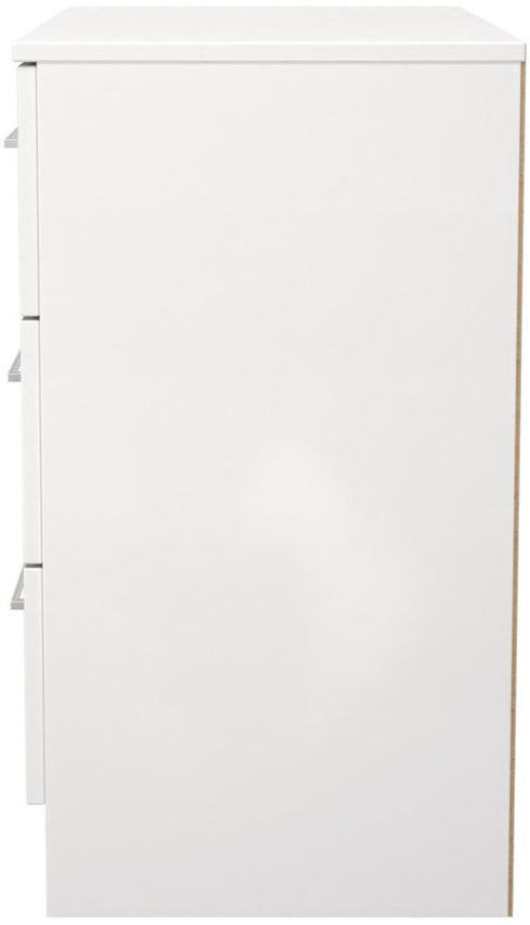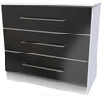 The Worcester 3 Drawer Chest Dresser in Black Gloss and White is a modern and stylish storage solution, perfect for any bedroom. This sleek chest of drawers is ready assembled and designed with a scratch-resistant finish, making it both durable and practical. Featuring three spacious drawers with solid metal pull bar handles, this dresser combines functionality with contemporary design. Available in four versatile colours, it fits seamlessly into any interior style.